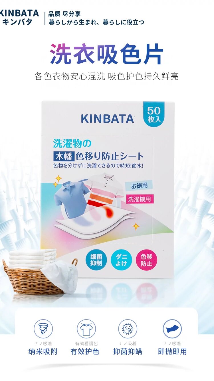 Цветопоглощающие таблетки кинбата, японские таблетки против окрашивания, разноцветная одежда, антибактериальные таблетки для стирки и удаления клещей, 50 штук, семейная упаковка