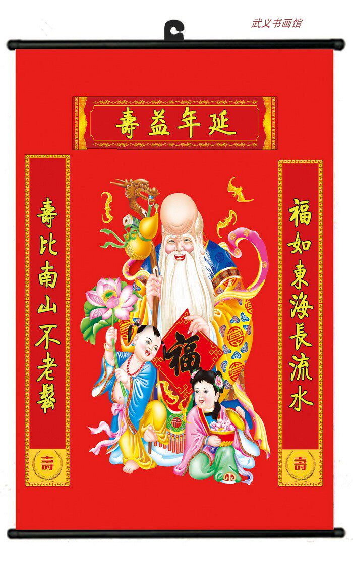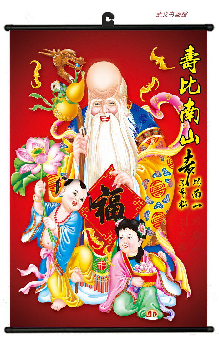 Китайская традиционная живопись декоративная висящая картина со свитками, освещение Будды статуя, Shouxing laoshouxing Антарктическая Антарктика Венг Венг Венг.