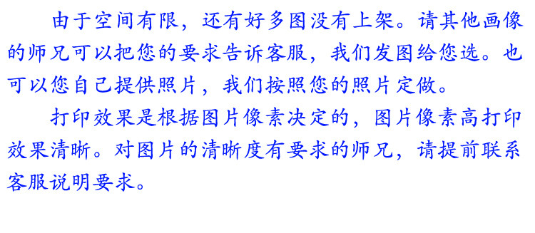 Если есть особые требования, например, если вы хотите сделать большой размер, размер сделан  индивидуальные изменения рисунка и т. Д.&Nbsp;, пожалуйста, свяжитесь с Вангвангом, я постараюсь как можно больше удовлетворить потребности, и вы обязательно сделаете вас счастливыми