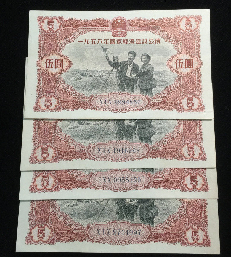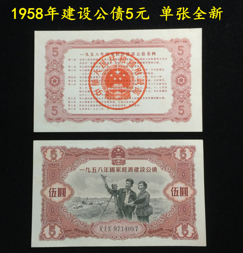 В 1958 году национальное экономическое строительство государственное долг Wuyuan пять юаней 5 юаней -единственной новой монет банк валюта