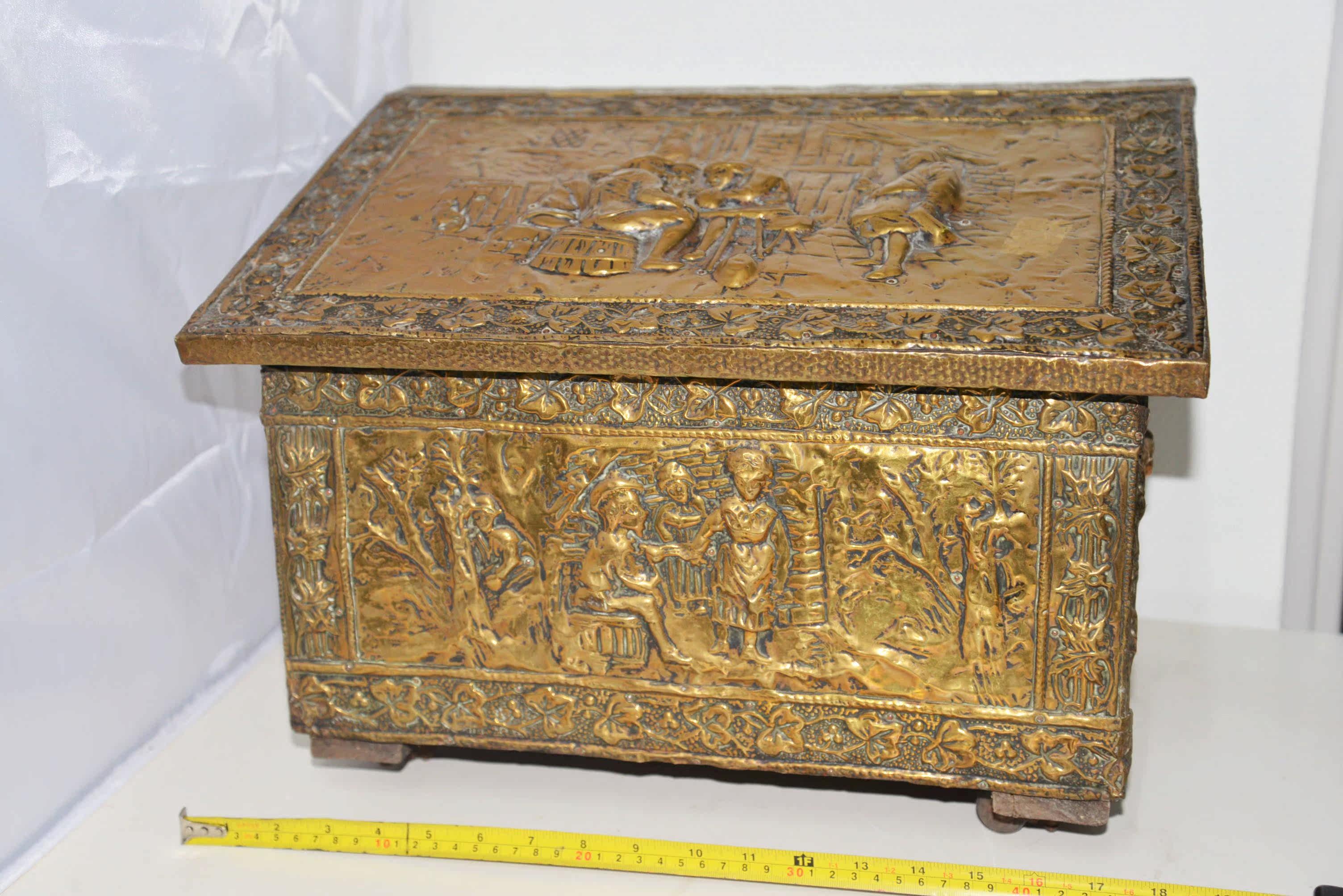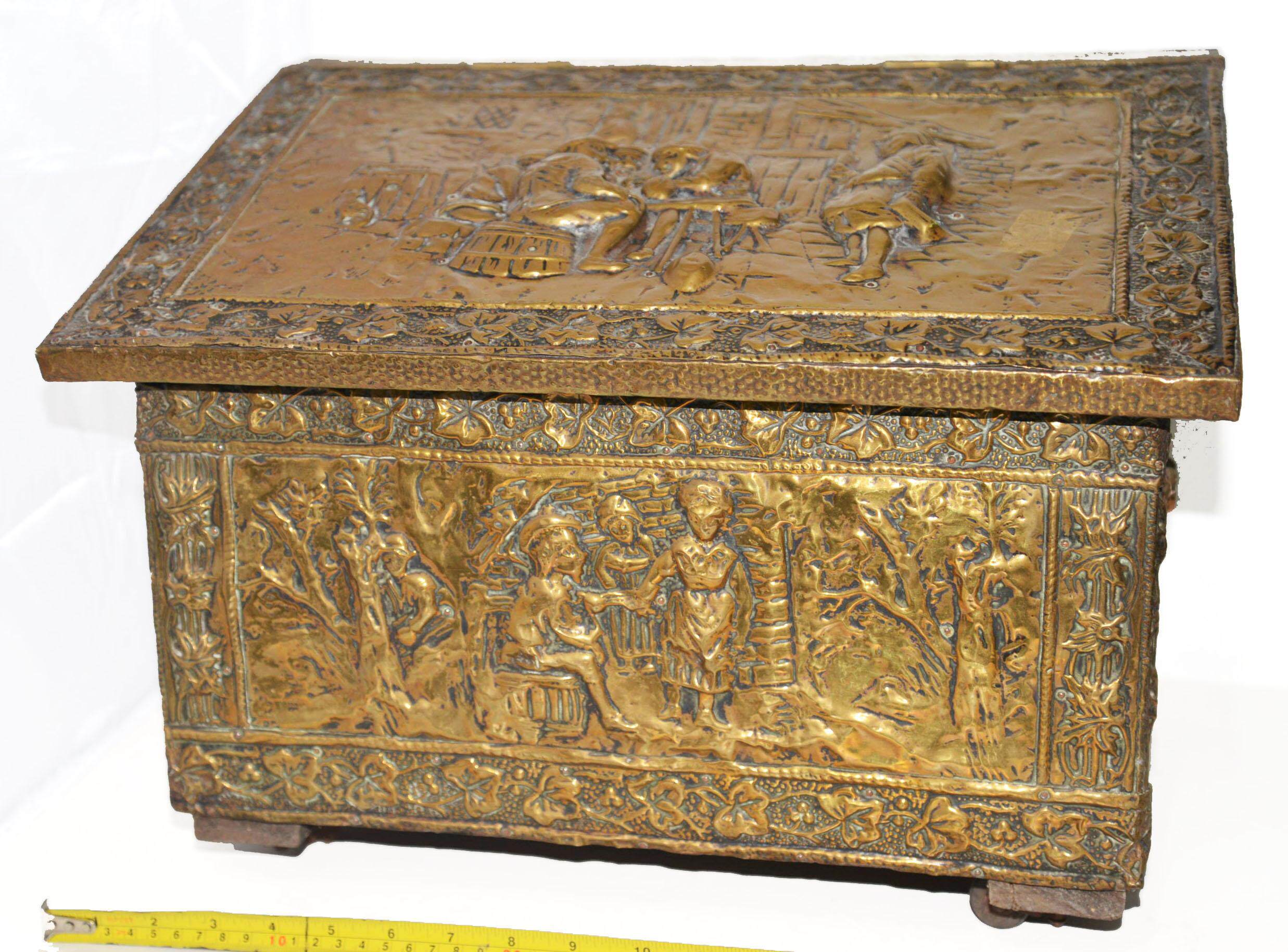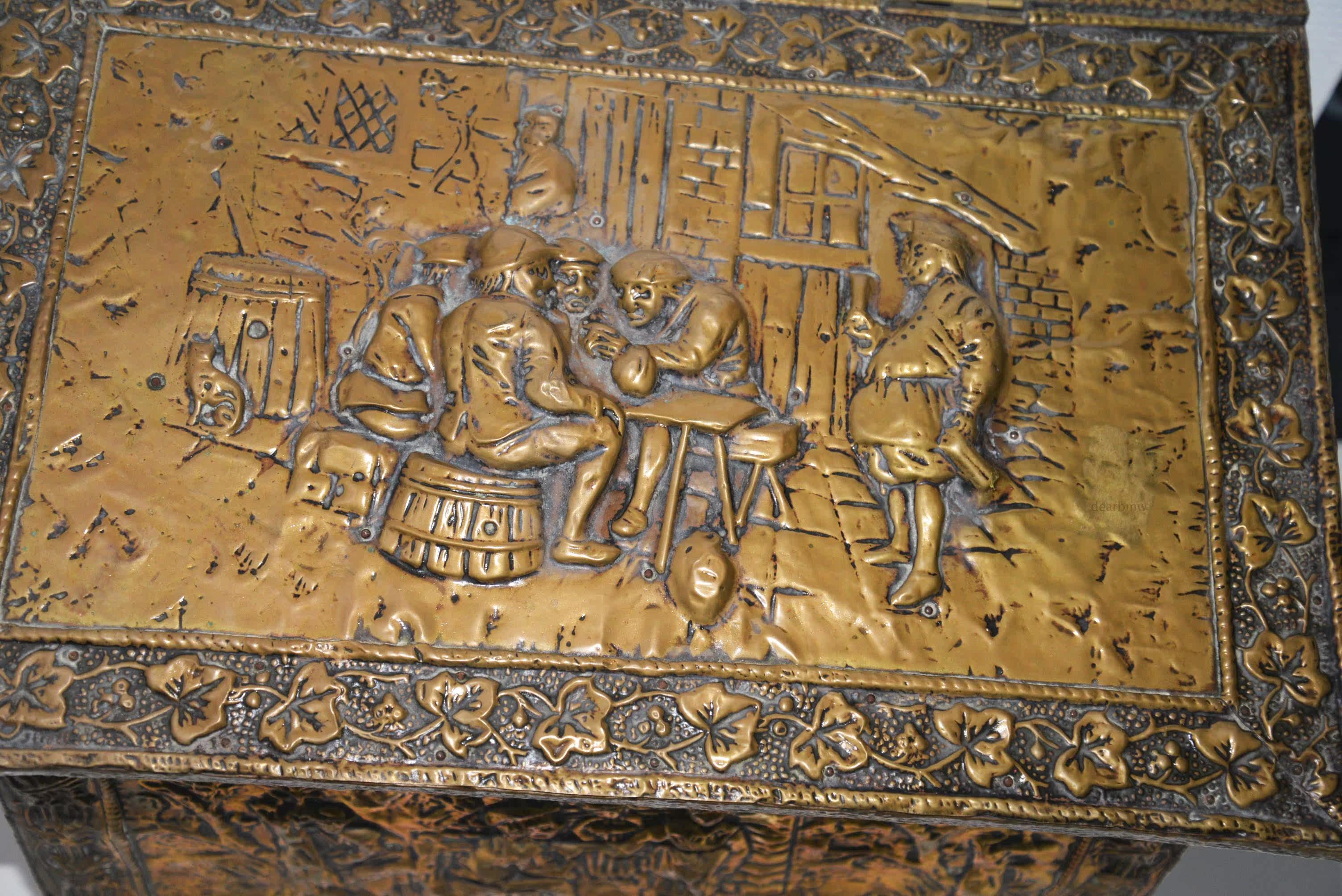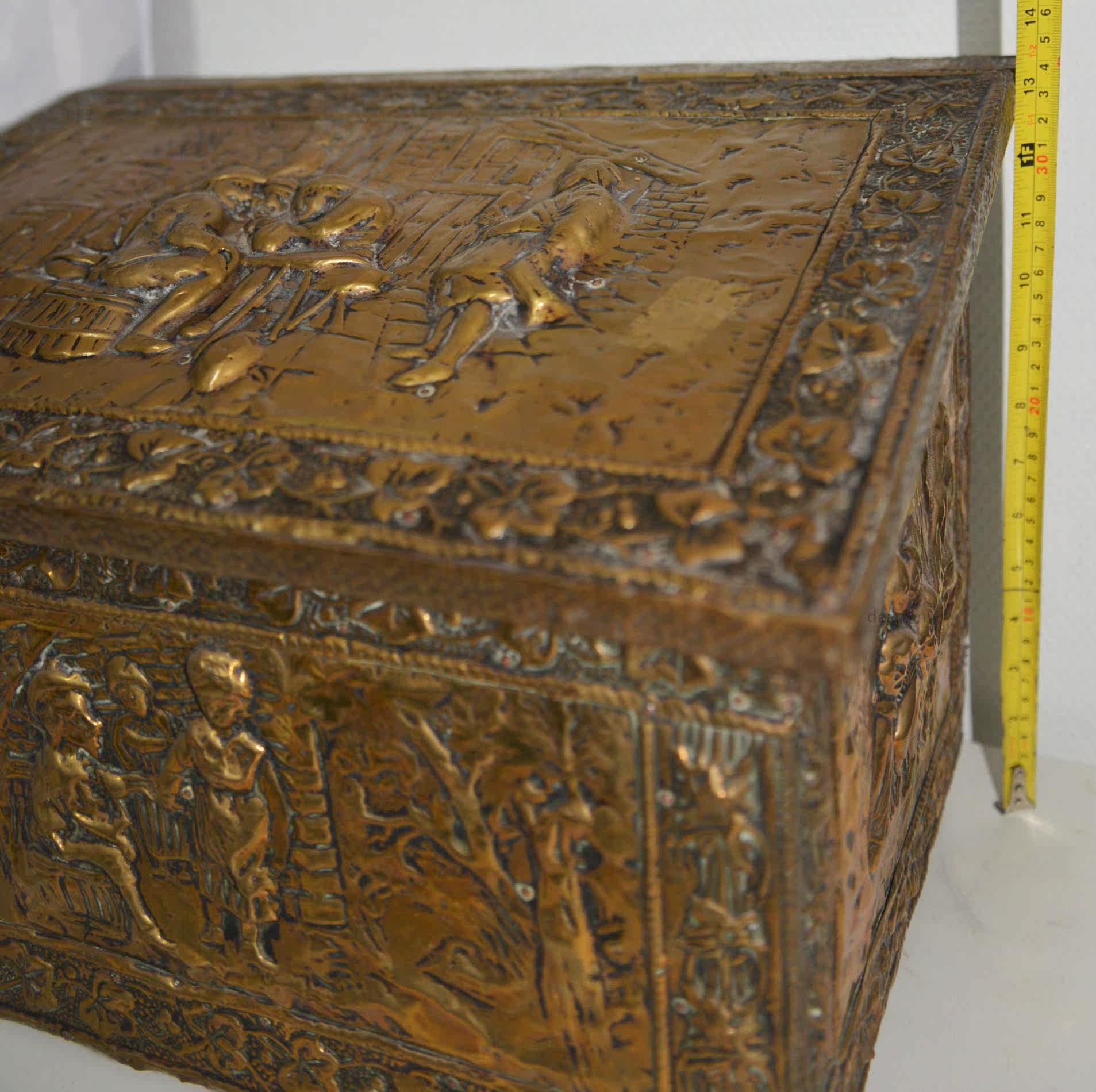 Редко около 1880 г. Европейские дворяне с персонажами по оказанию помощи медью, предмет темы мобильных ящиков для хранения сокровищ