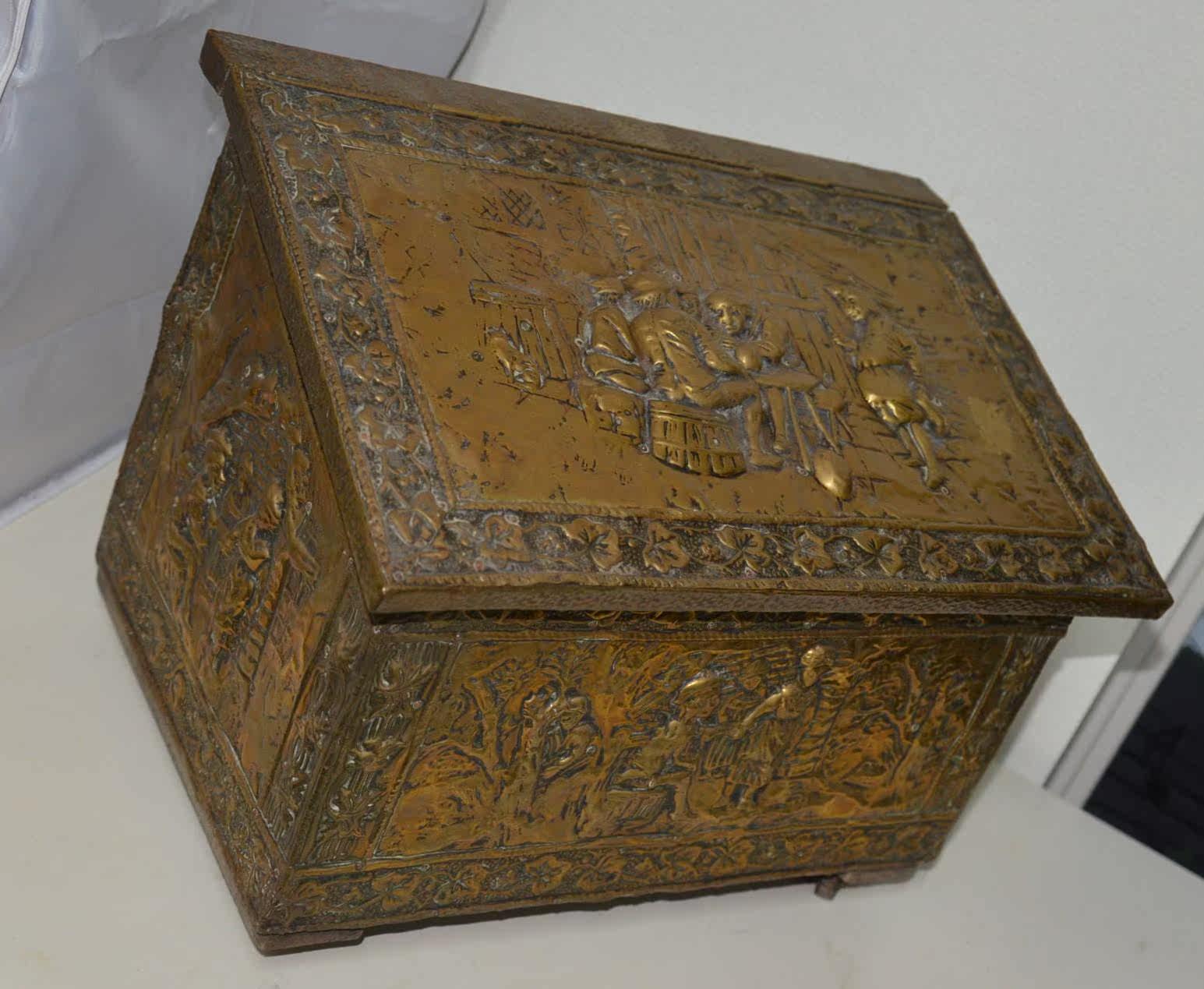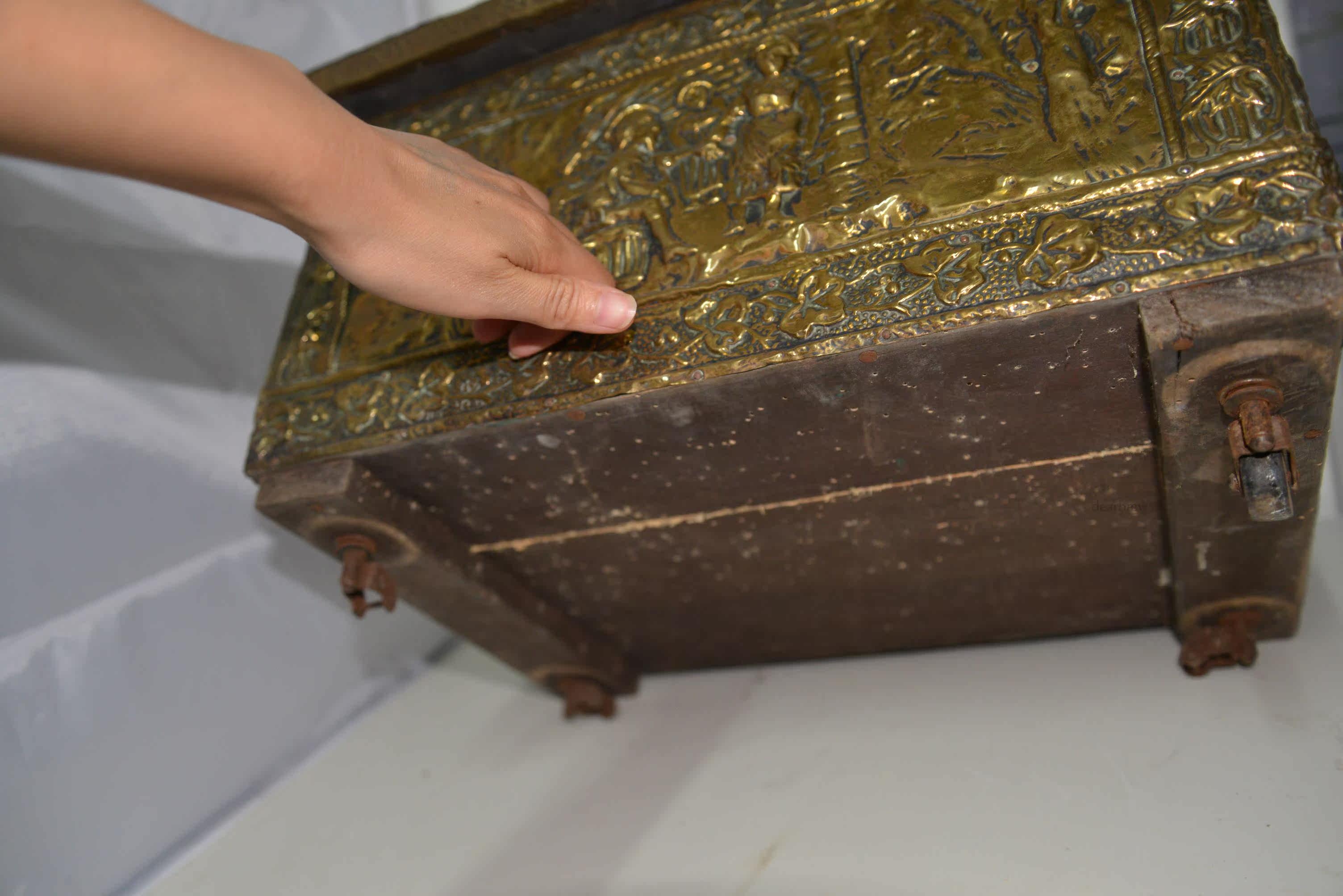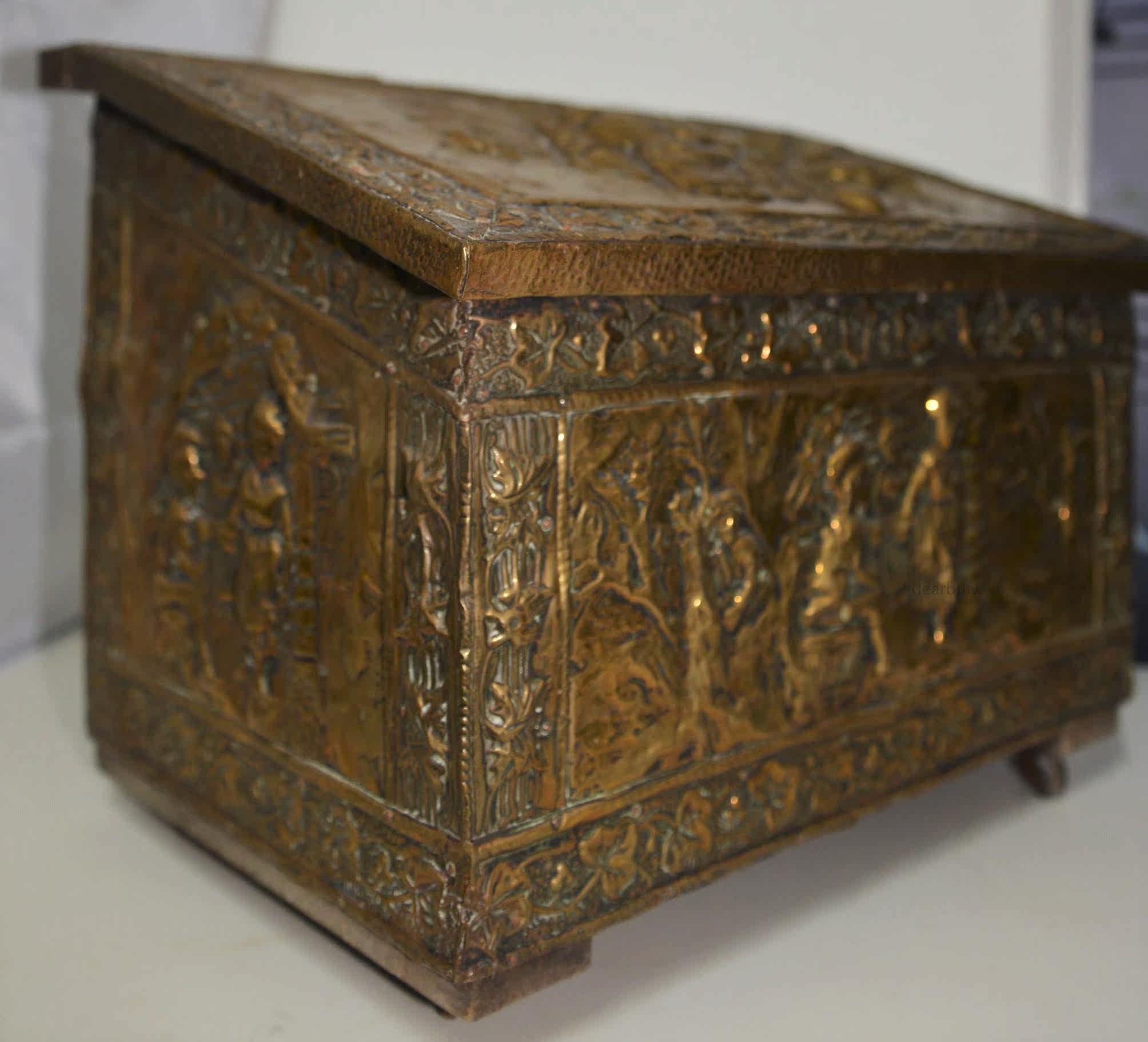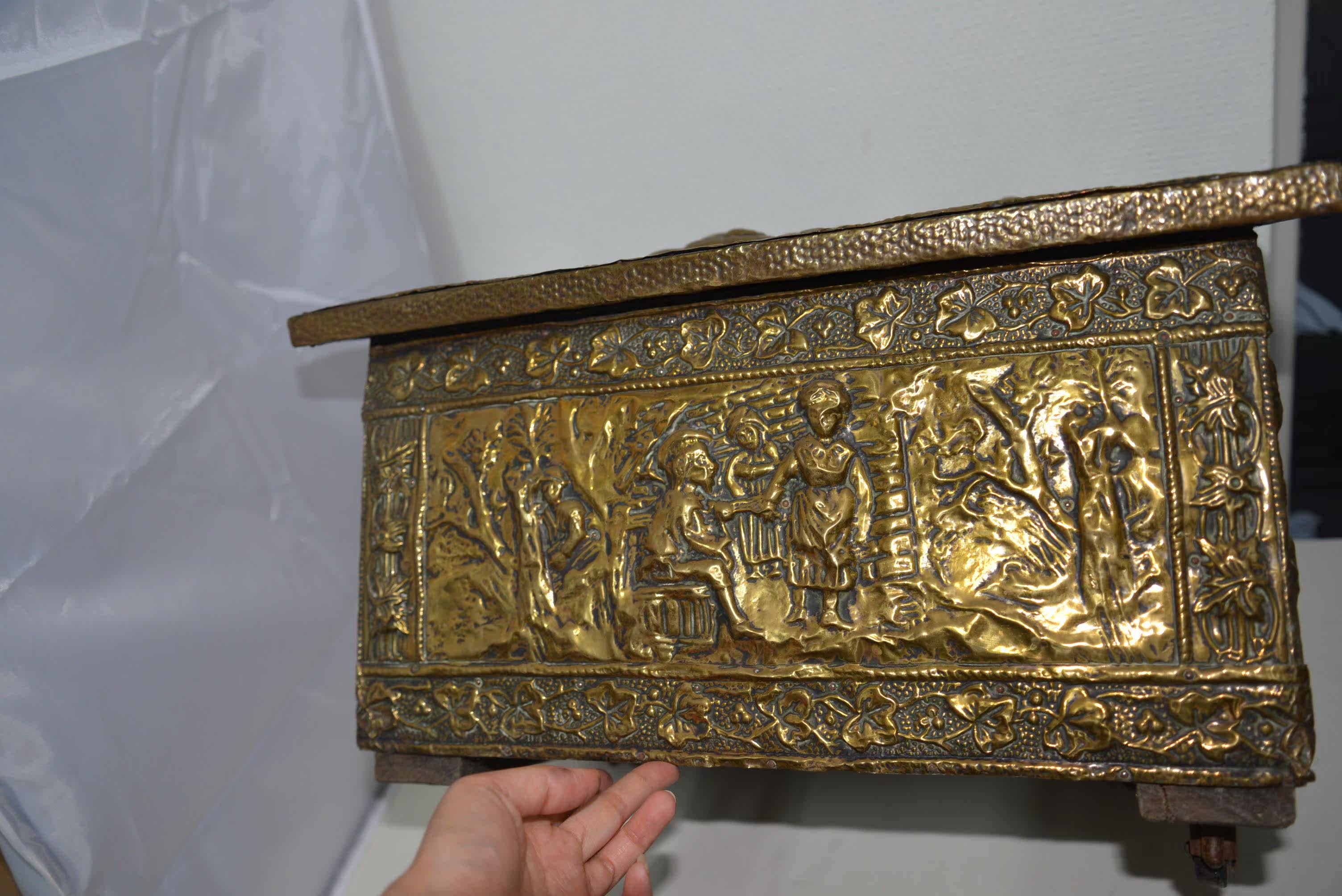 Редко около 1880 г. Европейские дворяне с персонажами по оказанию помощи медью, предмет темы мобильных ящиков для хранения сокровищ