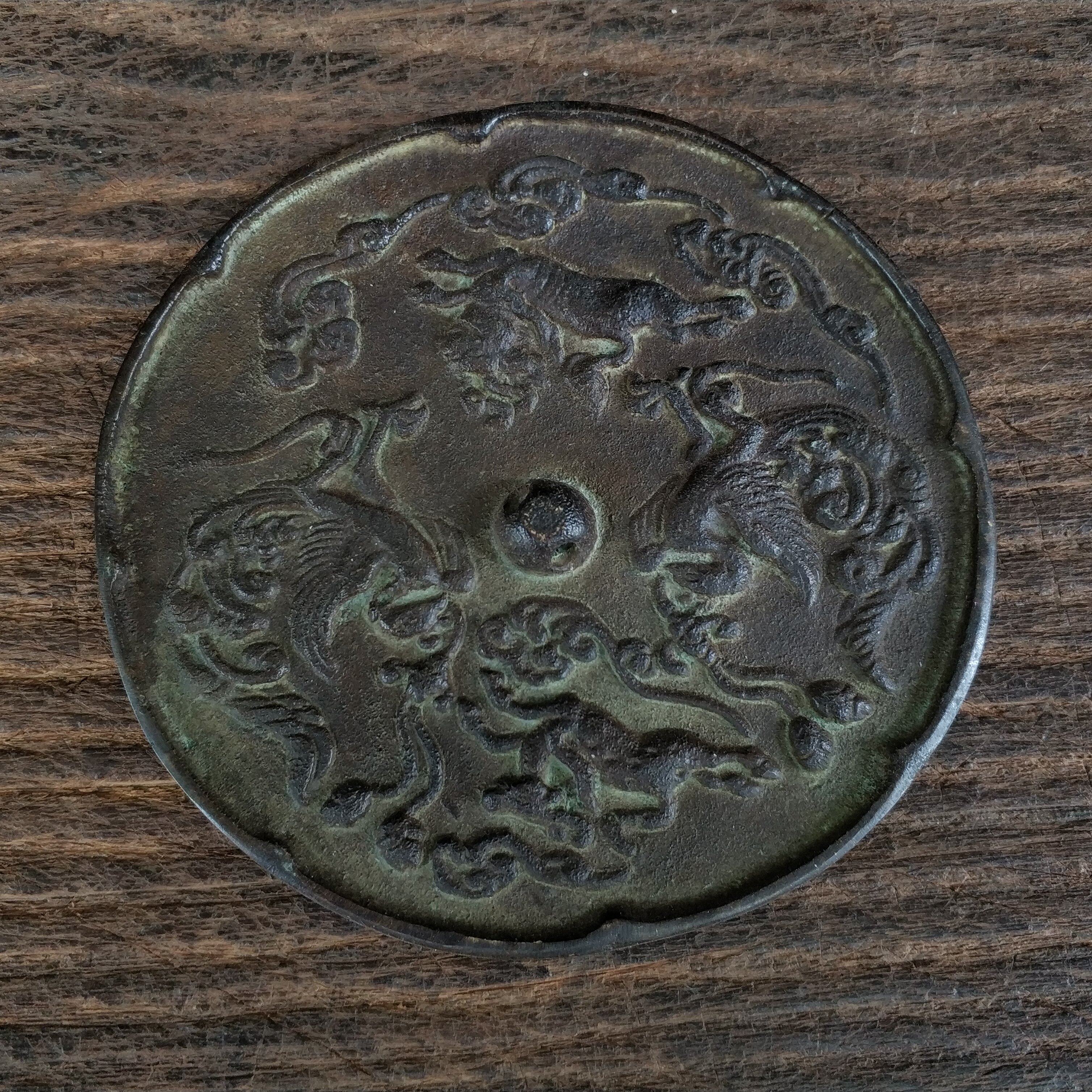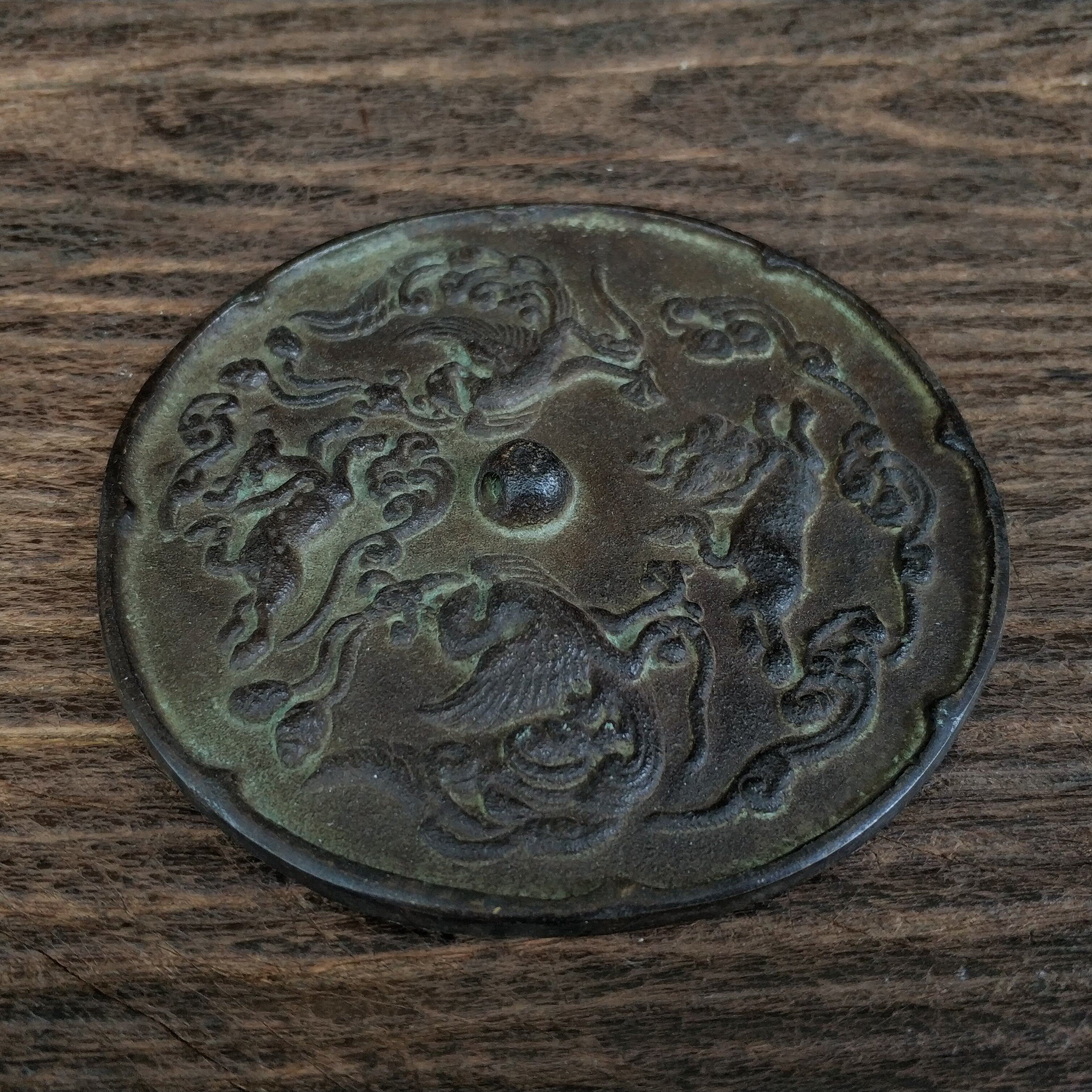 Медное зеркальное зеркало медная печь копченая льва 貔貅 Гуаньян Будда Статуи Антикварное мастерство изящно