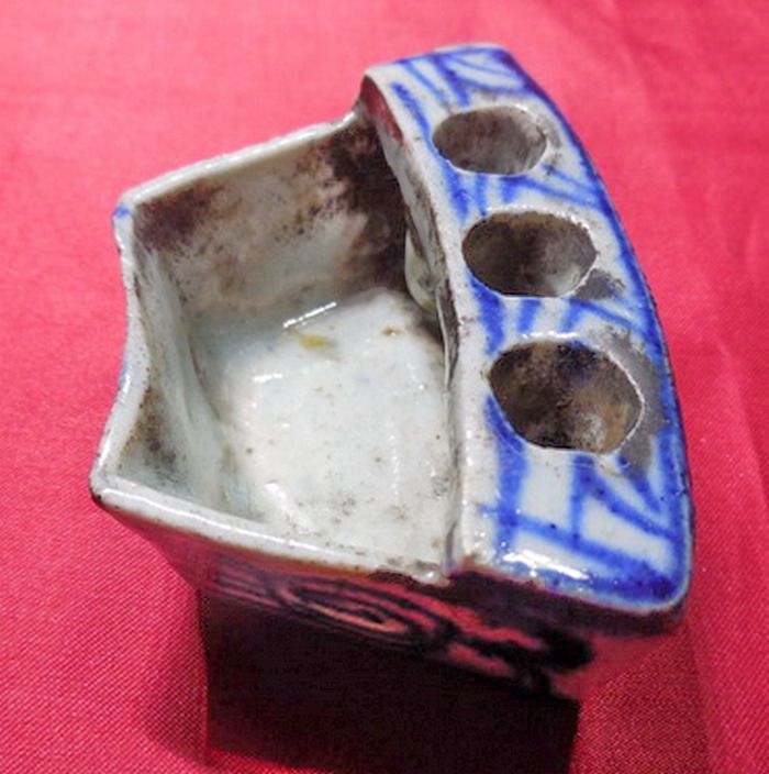 Античный фарфор, литературная живопись, каллиграфия и живопись, облизывая чернила ручка 掭 Голубая и белая фарфоровая ручка вставка прудов, династия Цин Старой фарфор подлинные продукты