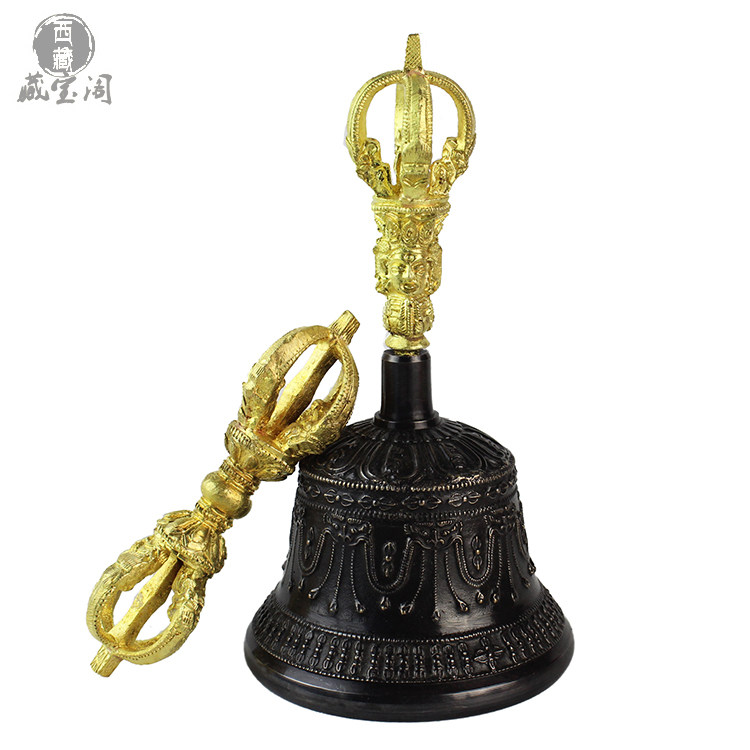 Тибетский журнал ручной работы пять акций черного позолоченного золота среднего алмаза буддийского колокола