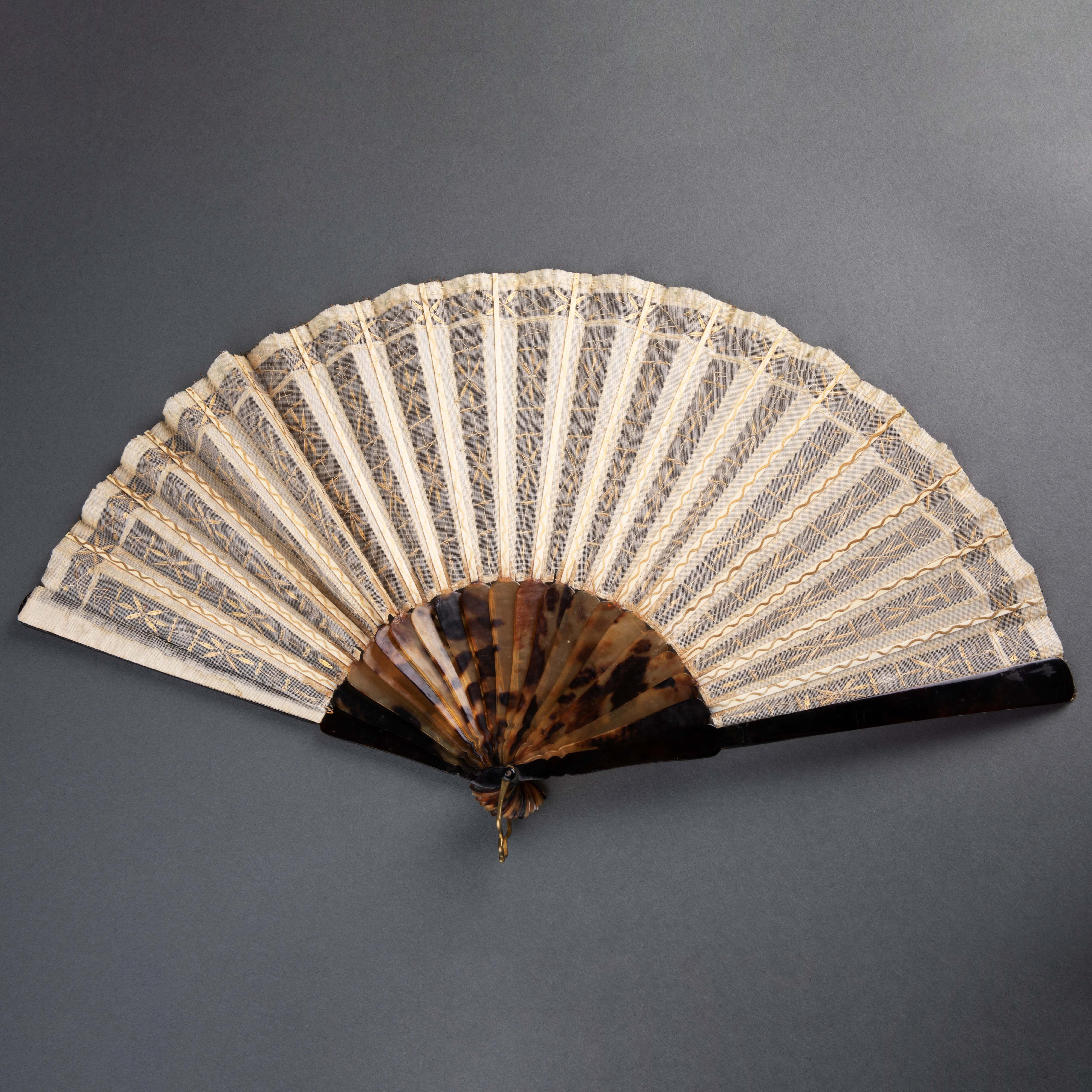 Антикварный металлический круглый веер, 1804-1815 года