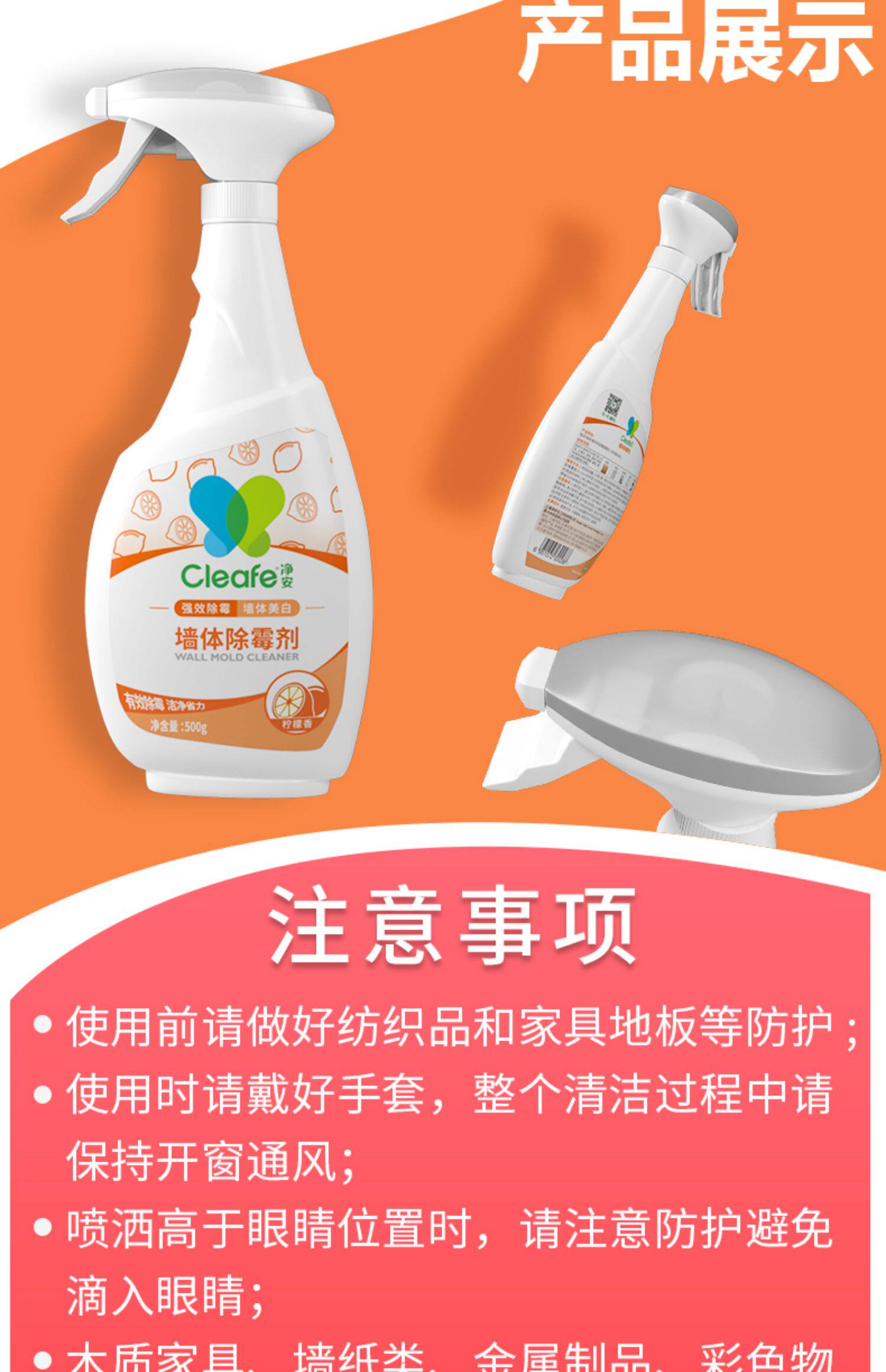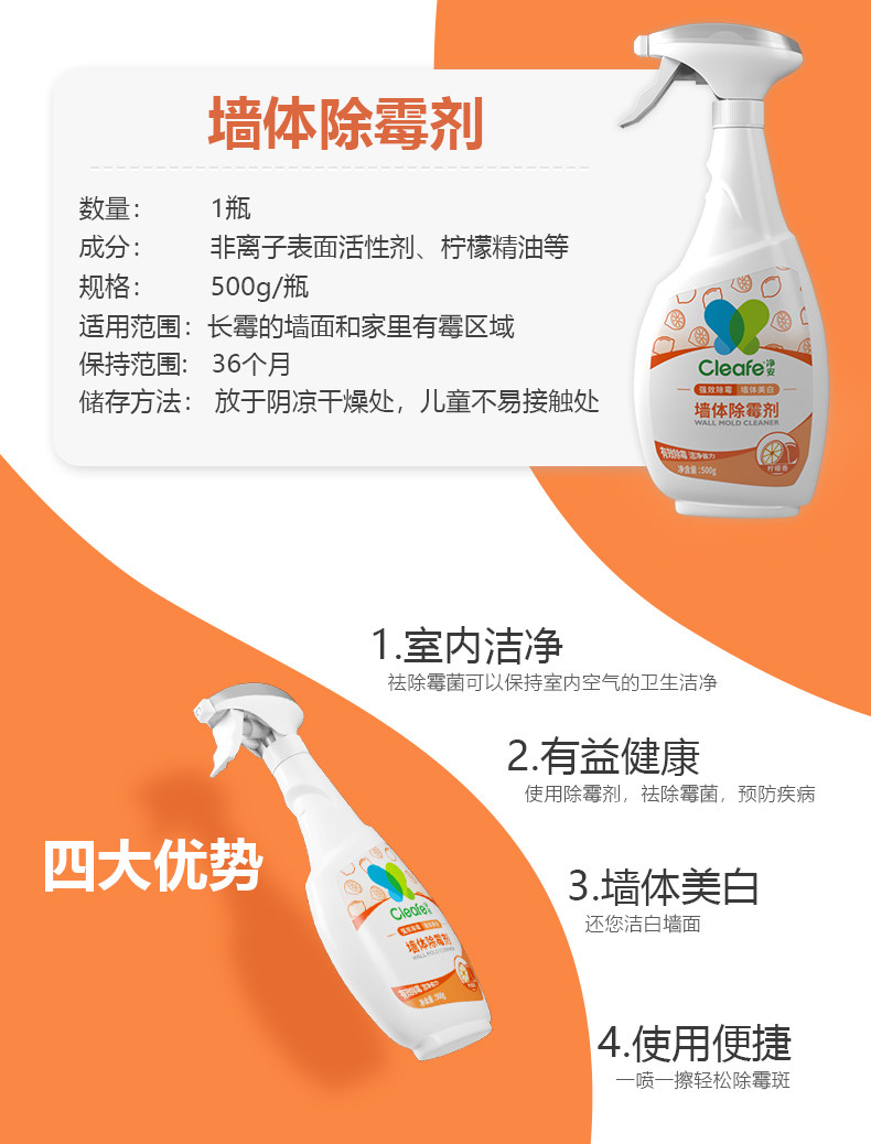 Очистить стену Снятие 500G2 бутылка -Загруженная комната белая стена стена Стена Снижение плесени плесень Семейный лимон