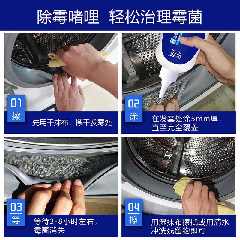 [3 бутылки] Beyle -Blue плесень гелевой барабанной стиральной машины резиновые кольца заплесневелые и заплесневелые стиральные машины для домашнего пульсатора Снятие плесени