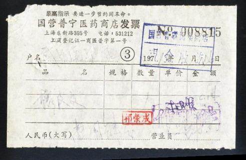 Сертификат билета на культурную революцию: наказание счета аптеки (6,5 × 10,5 см.