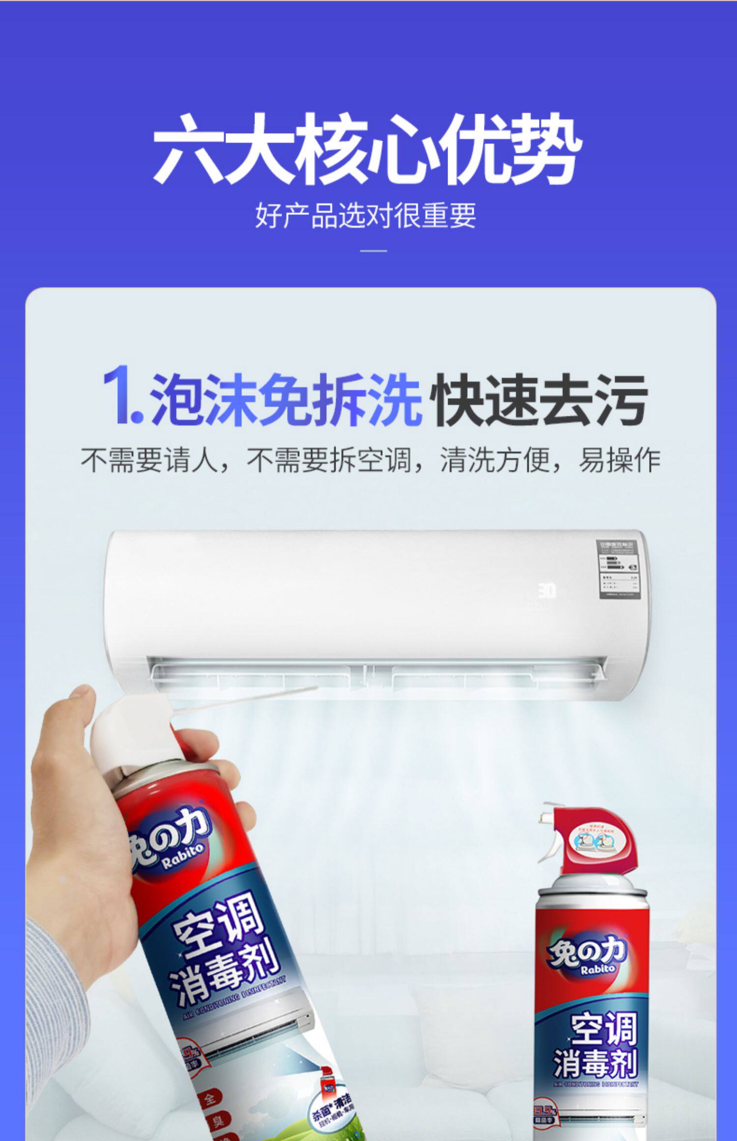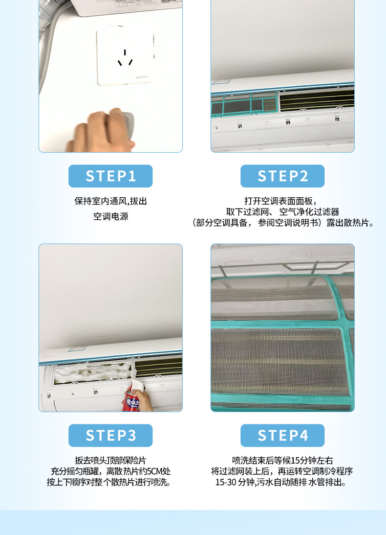 Промывание воздуха -кондиционирования чистящего средства домохозяйственной комнаты подвесная пена. Очистка Бесплатная разборка и освобождение от чистого сильного раствора дезактивации