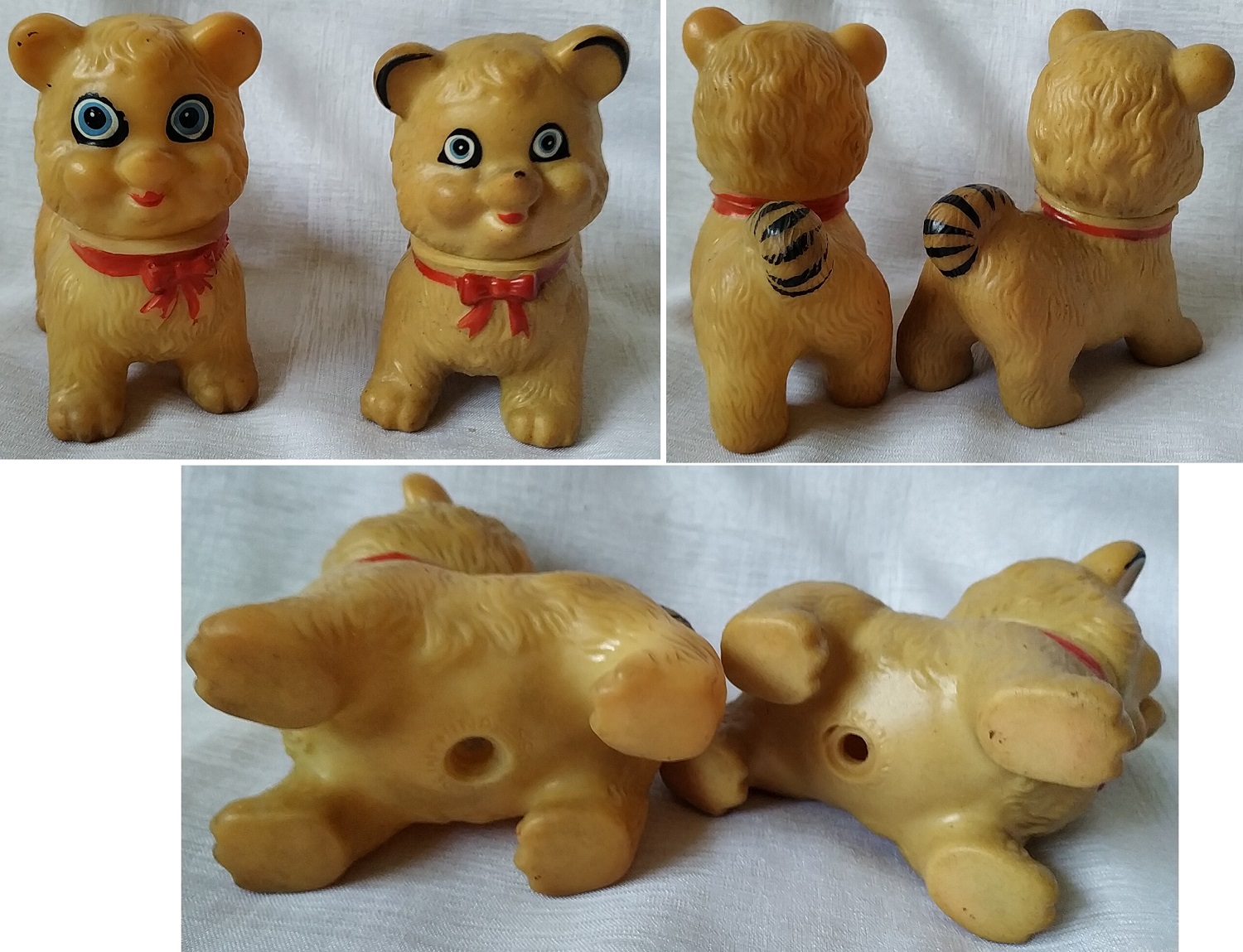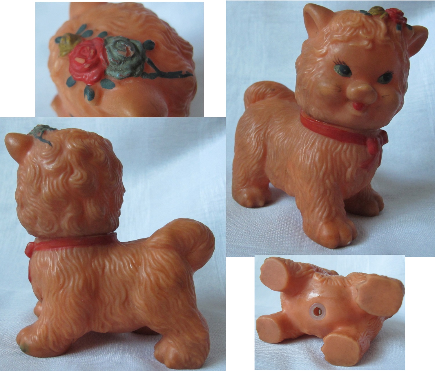 Старые резиновые игрушки, ностальгическая, мягкая резиновая пирсинговая кукла, PV057, маленький кот с красным луком, / One