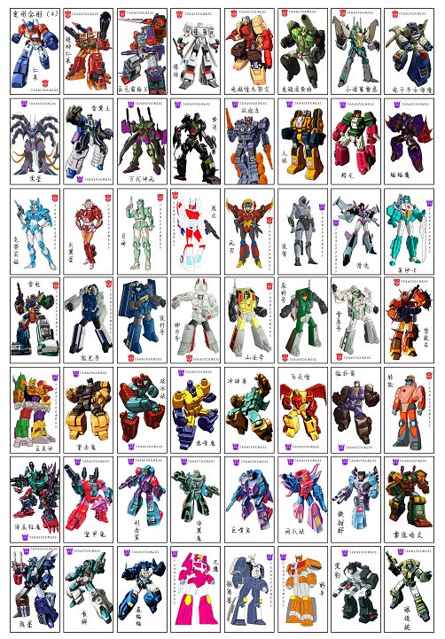 Печать ясна, и спина - это введение персонажей, которое подходит для того, чтобы помочь в деталях больше о трансформаторах, включая лидеров различных поколений, комбинированных таблеток и членов.