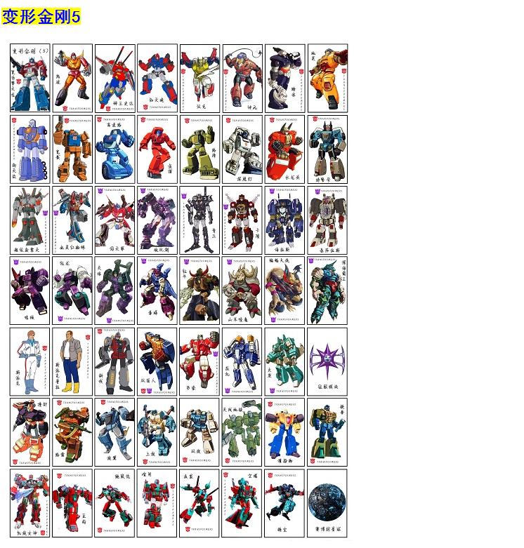 В том числе комбинация Optimus Prime, группа динозавров, вражеский Wushuang, Six -Sided Beast, Yuanshi Tianzun, Xiaolong, Super God, Star, Diablo, Collord, Big Dinosaur Salas, Ali Tita, Dark Optimus Well Well и т. Д. Некоторые персонажи.