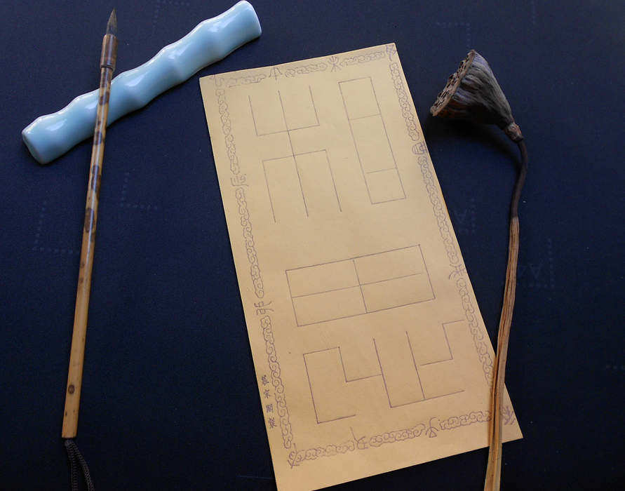 MU Song Pavilion Wood Edition Watermark Пять цветных параллельных Xian Xiang Boxing Box Wood Edition Watermark Watermarks