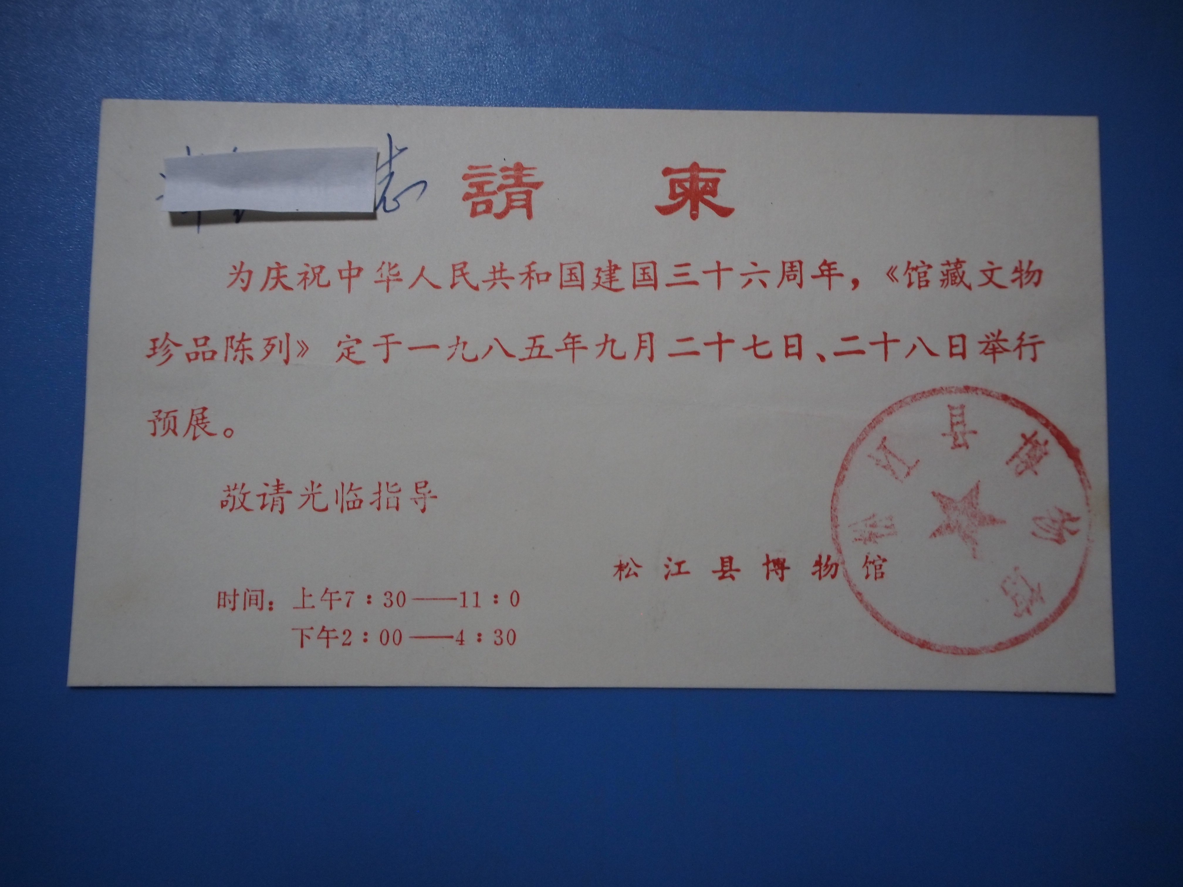 В 1985 году музей округа Сонгцзян отпраздновал 36 -летие основания Китайской Народной Республики