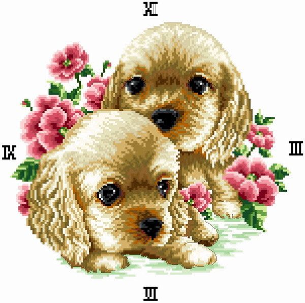 Карточная собачья часы поперечная вышива