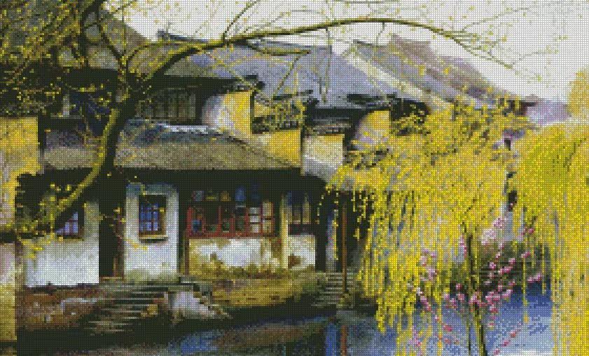 Восемь поперечных вышитых снимков Jiangnan Water Village, Re -Drawing Trawing Rhailing исходное файл вышивка кабель Cable Crown Credit Credit