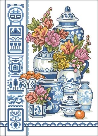 A157 Синий и белый фарфоровый кросс -ход перекрестный рисунок PM4 исходной файловой вышива