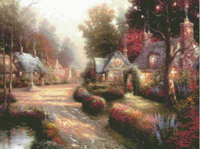 Смешанная линейная пейзажа-фериовый сказочный замок 12 поперечный ход повторный рисунок чертеж рисунок исходный файл вышивка