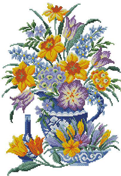 Blue Bottle Bottle Flower Cross Stitch Rhailting Re -Drawing Trawing Traw Cable PM4