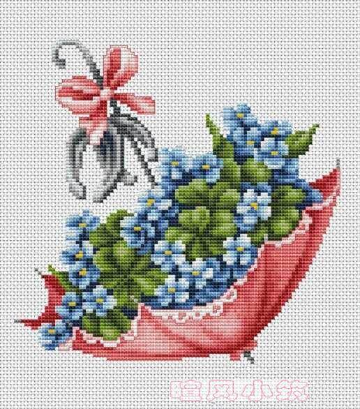 Замена исходного файла электронного рисования поперечного сшивания-синий цветок в красном зонтике в красном зонтике