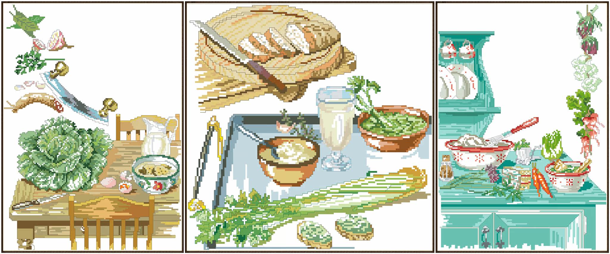 Угол кухни, три картинки из бумажной вышивки, 14 страниц, 128 г цветовой распылитель бумажной печати