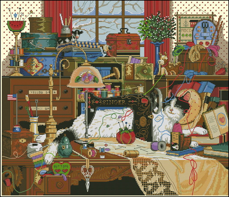 Ultra -clear Color Cross Stitch RE -Painted Trawing/Source File Dim Cat 2