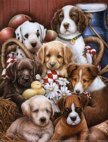 Семь собачьих вышитых вышитых картин