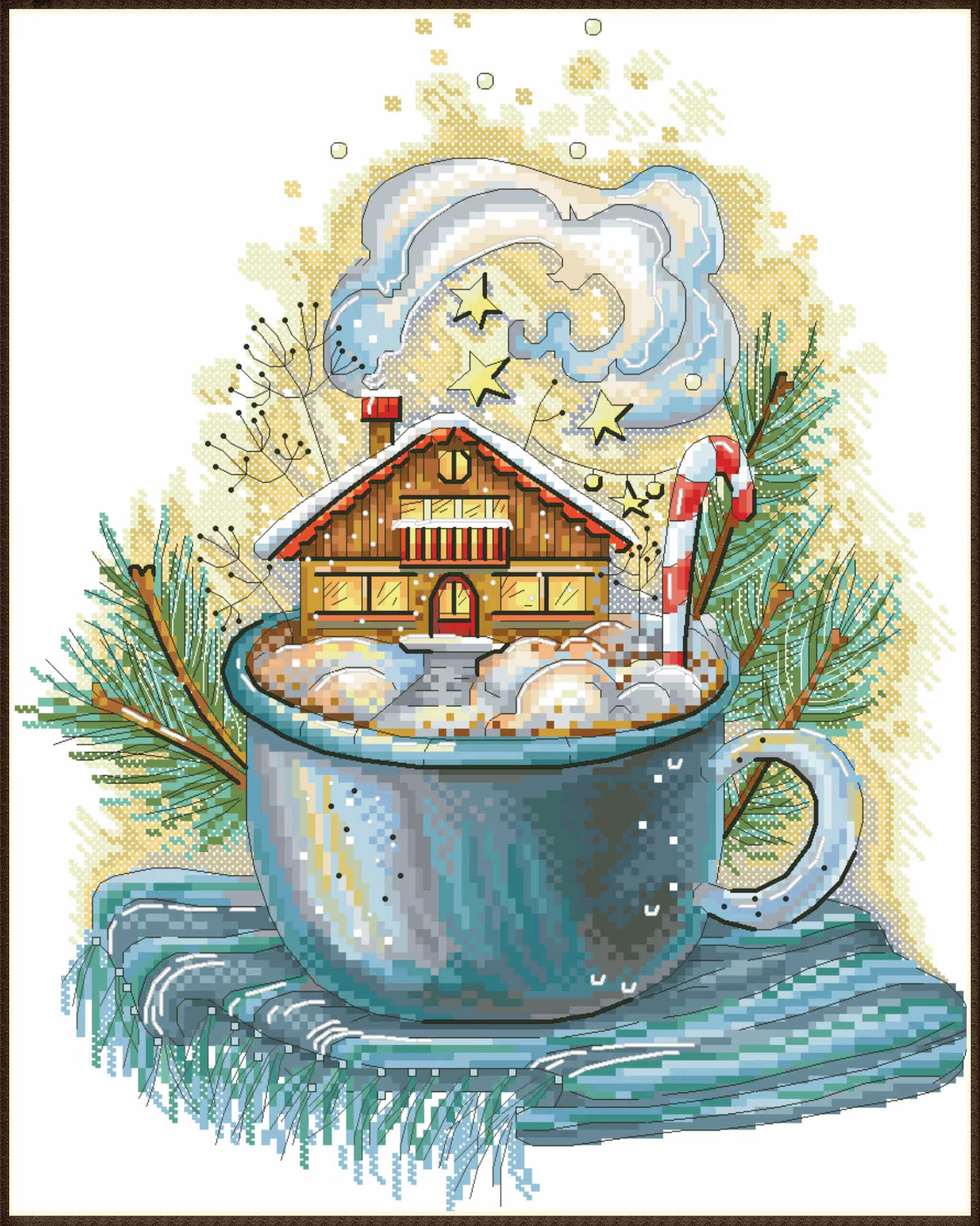 Зима в чашке кросс -стежок