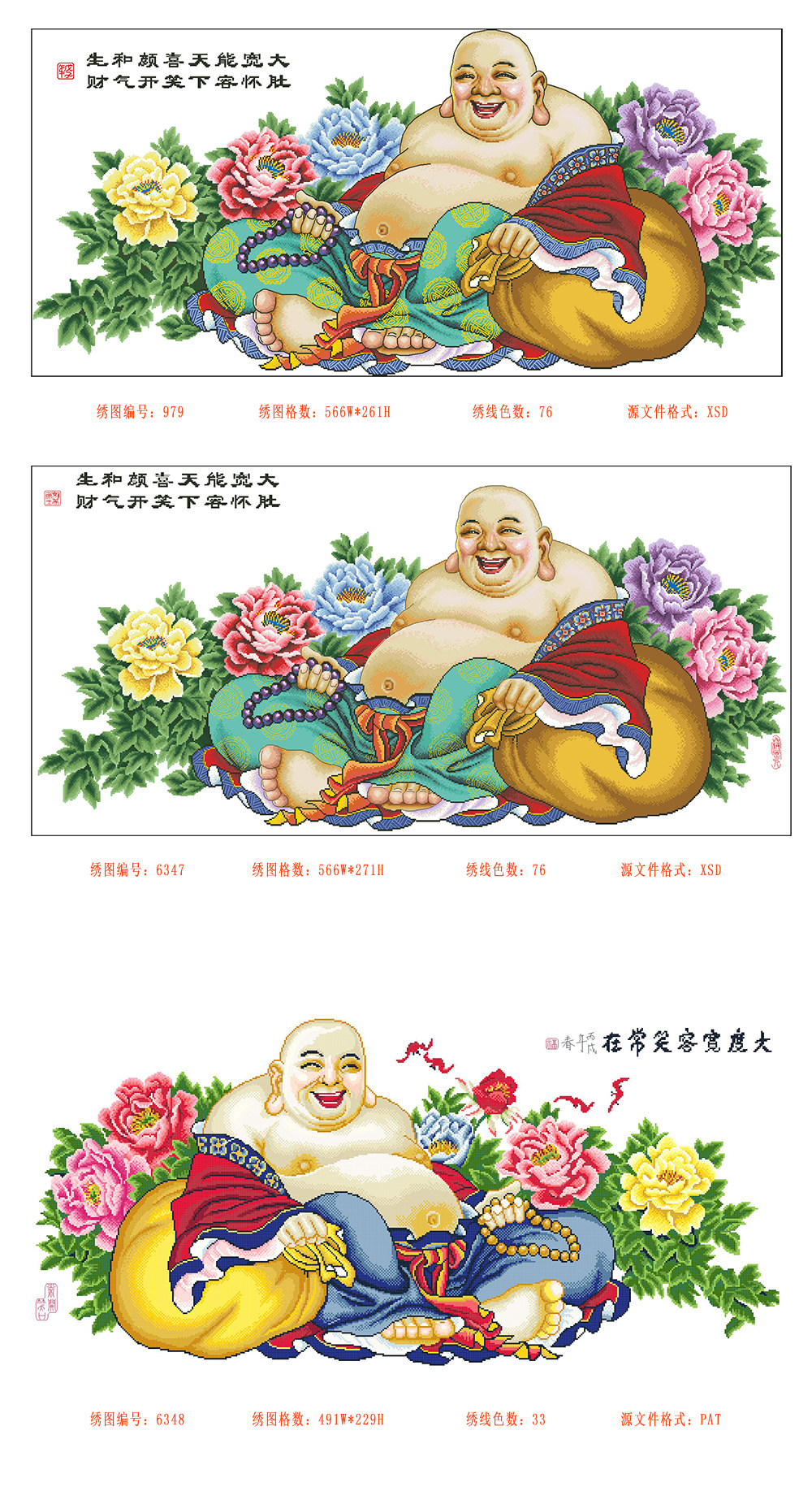 Электронные рисунки по пересечению сшивания 979, 6347, 6348 Maitreya Buddha 5 Yuan на картинку XSD, PAT Source File