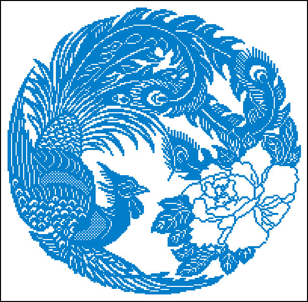 Cross Stitch Электронный чертеж 6793 Монохромная бумага Вырезанная файл Phoenix Peony XSD Source File