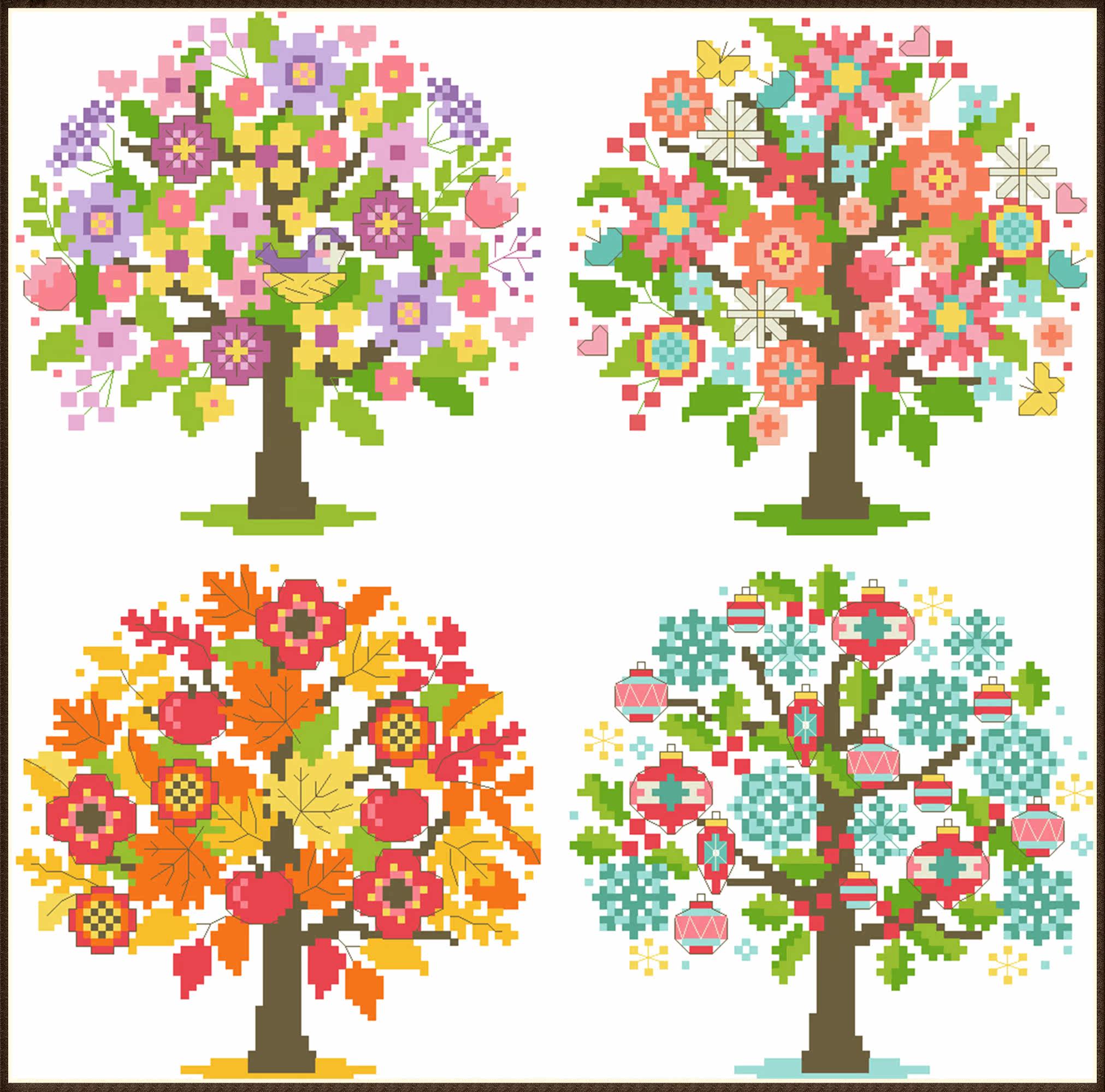 Сезонные деревья перекрестная вышитая вышива