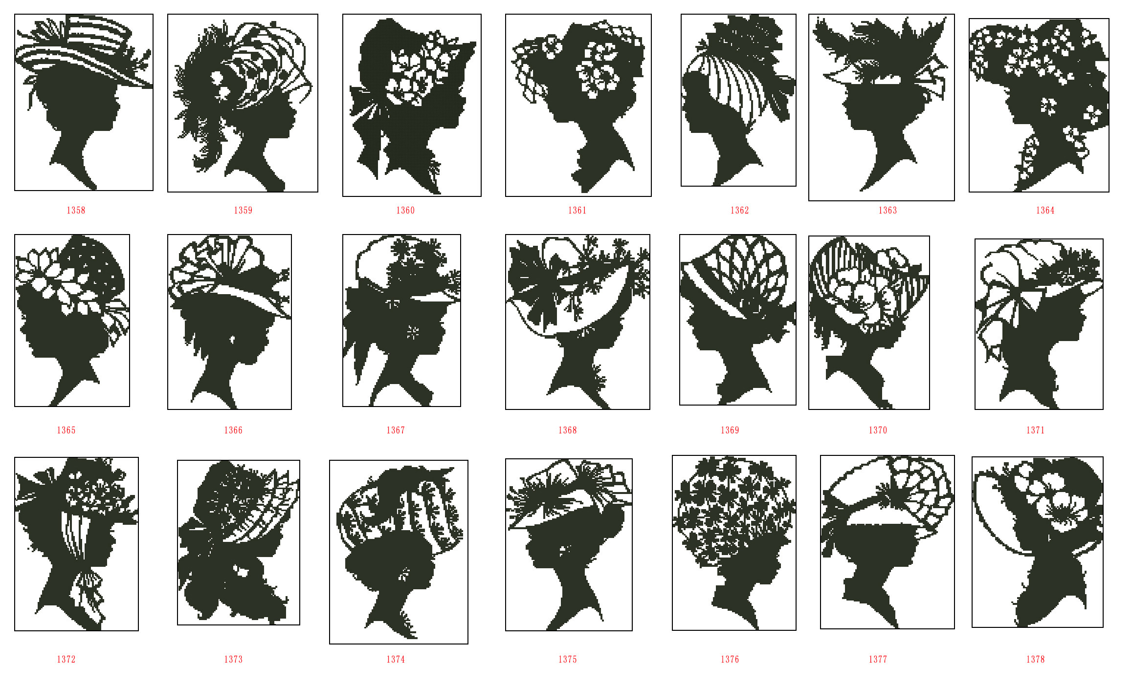 Электронные рисунки по перекрестному сшиванию 1358-1378 21 Аватары Каждое изображение около 80 Вт*120H Монохромное исходный файл XSD