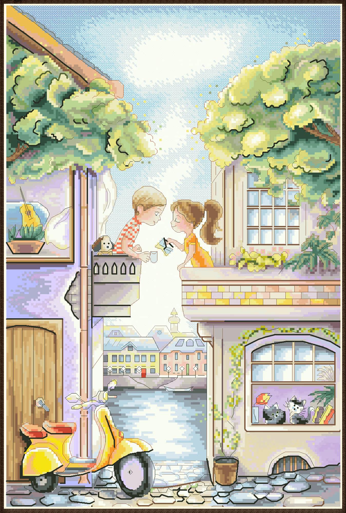 Любовь в раннем утре, сшивая сшивающая бумага Качественная вышивка.