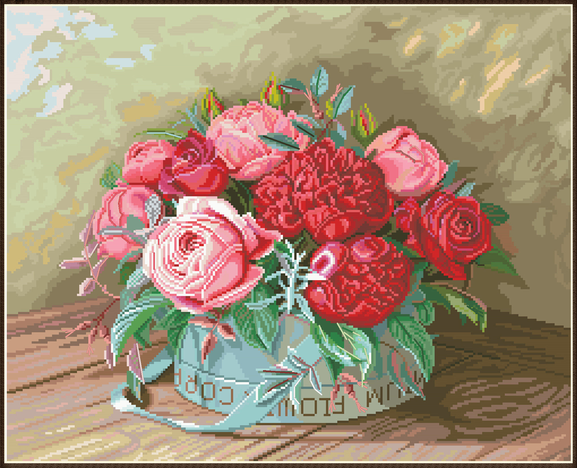 Пионы и розы, сшивая сшивание, изображение 10 стр.
