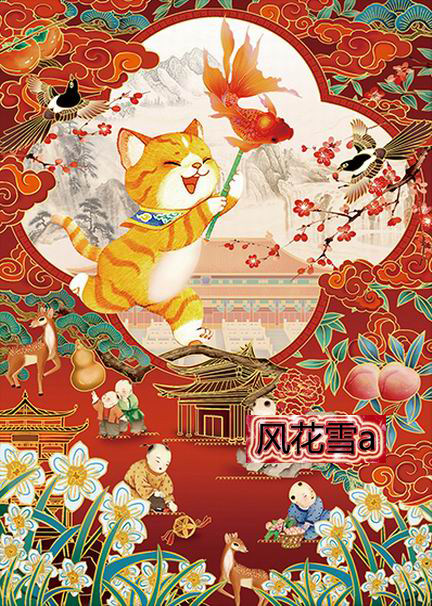 Ultra -clear Color Cross Stitch Re -painted Trawn/Source File Recuting Fortune Palace Royal Cat 216 303