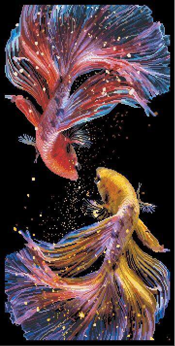 Cross -STITCH Электронный рисунок тяжелый рисунок исходный файл xsd красивые золотые рыбки из радуги