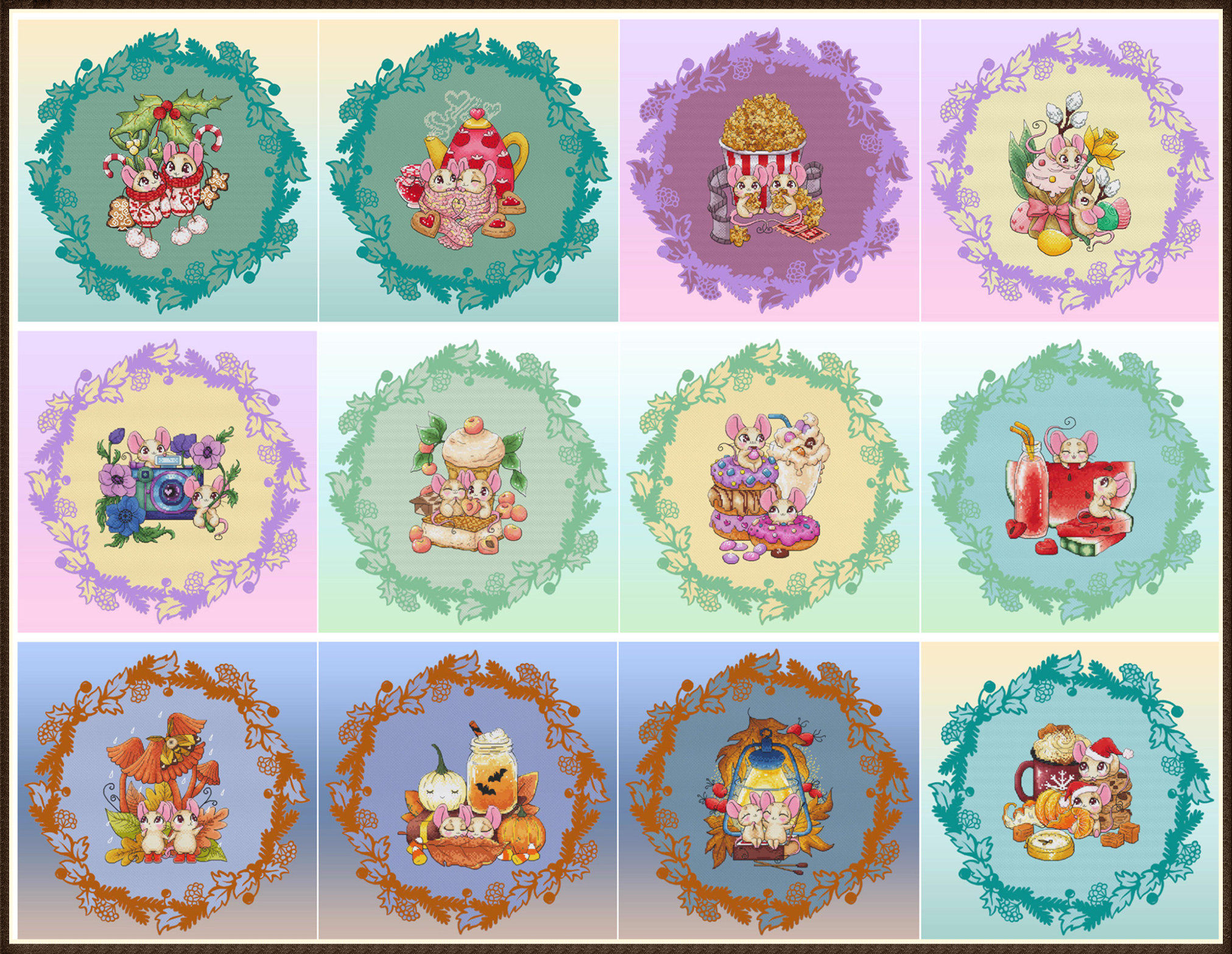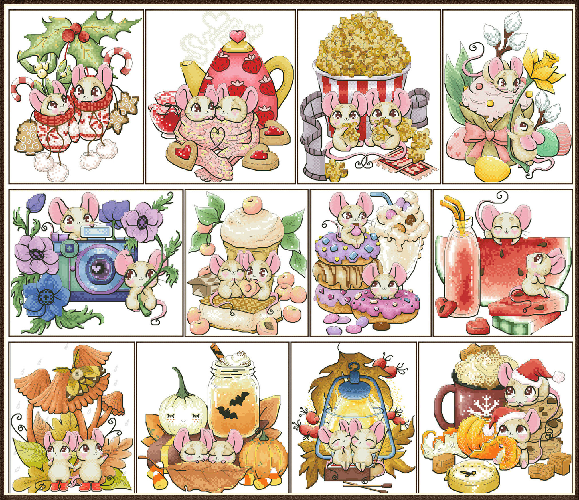 Декабрьская мышь (12 комплектов из 12) Поперечная строчка качественная качество картин 34 страницы 128 г цветовой распылитель