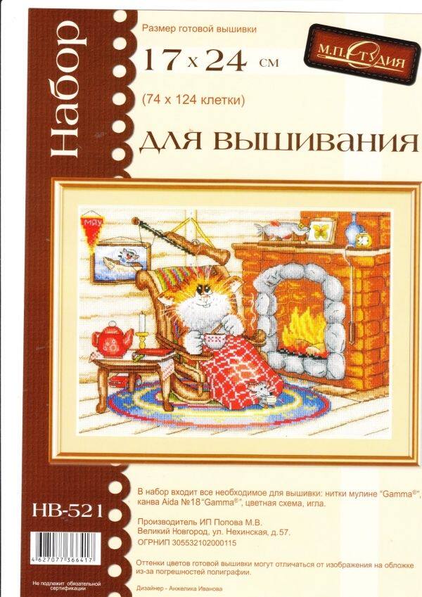 Рисунки для вышивки крестом исходный файл xsd Saga Y0758 Теплая ночь Котенок у камина MP Redraw