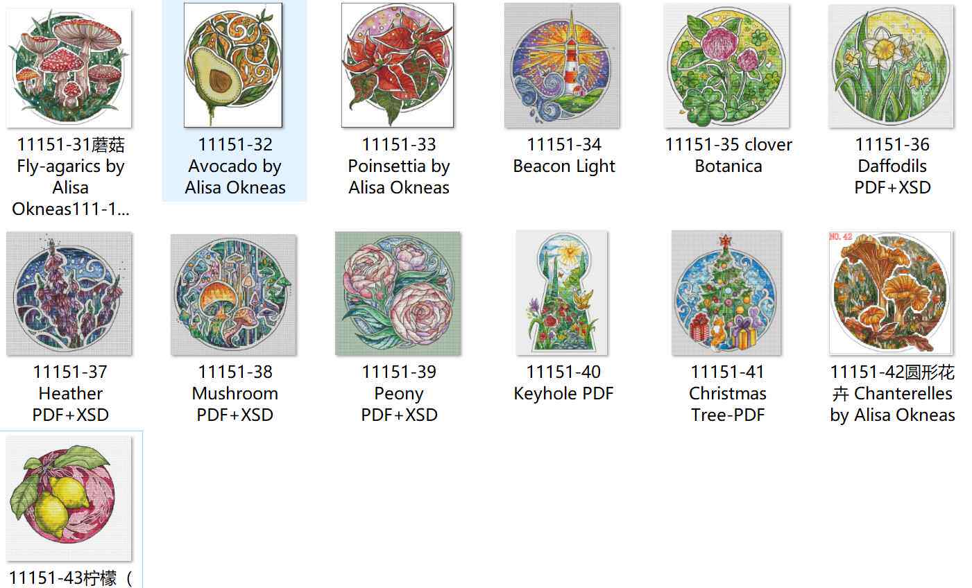 43 Cross -STITCH Pattern Daquan Brawing XSD Re -Painted Saga Source File 11151 Круглый цветочный сериал