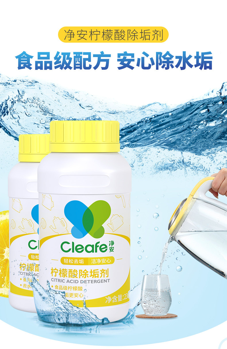 Прозрачный напиток водяной машины с горячей водой Электрическая вода Снятие бутылки 230G*2 Бутылки пищи -Объявление лимонной кислоты Удаление грязи