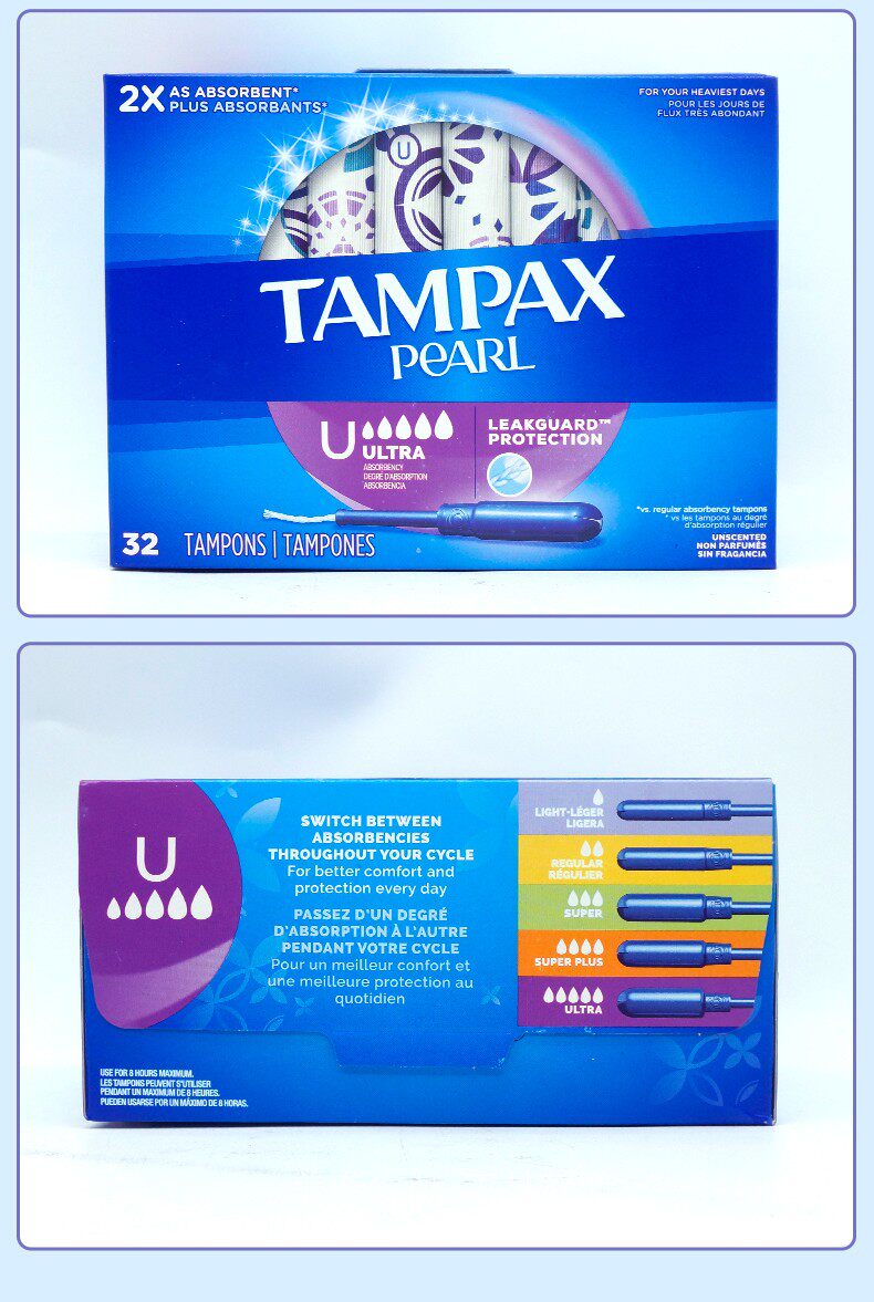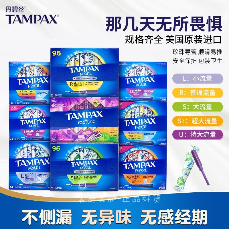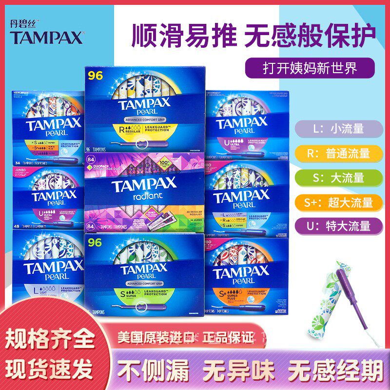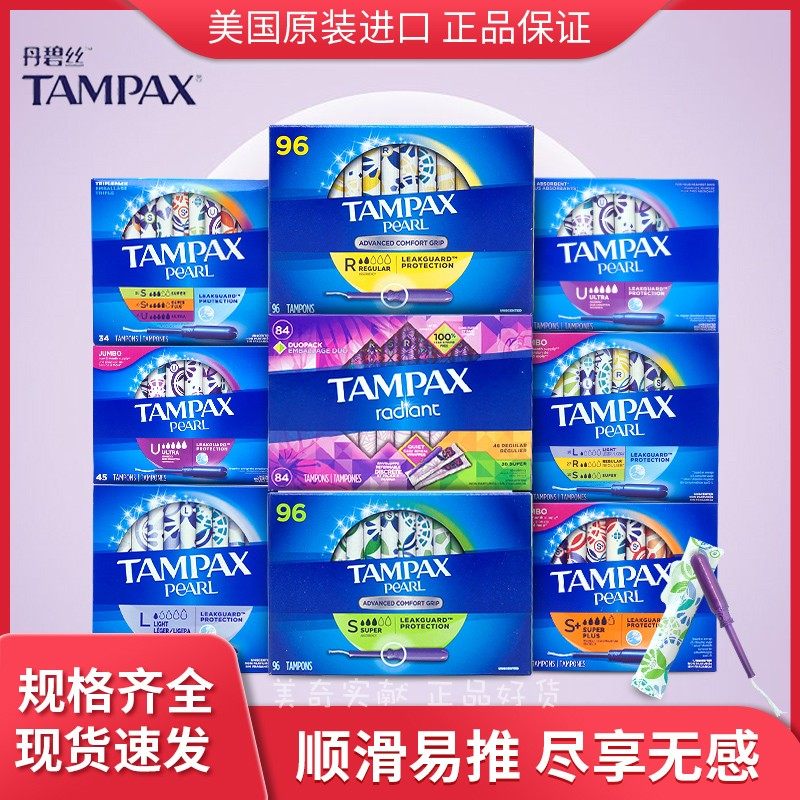 Пятно в Тампаксе Тампакс Пластиковая катетерная хлопчатобумажная хлопковая хлопчатобумажная хлопчатобумажная полоса 96, 84, 50 обычных крупных хлопок