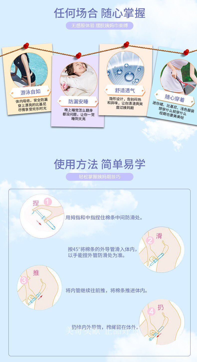 Шаг 5: В это время вставленная полоса вставлена в грубую трубку, а две трубки перемещаются вместе. В настоящее время хлопковые батончики уже находятся внутри вашего влагалища, а веревка висела снаружи. Он ждет вас Чтобы убрать хлопок в будущем. Он используется, когда вы не чувствуете, что хлопковая полоса не существует, что указывает на то, что его местоположение верно.Когда вы чувствуете себя некомфортно, это означает, что позиции, в которую вы нажимаете, недостаточно, и это может чувствовать себя некомфортно при вагинальном отверстии.Если это так, вы можете только аккуратно вытащить хлопковые полоски и положить их в новую, чтобы подтвердить, что хлопчатобумажная полоса помещается в достаточно глубокое положение.После тренировки несколько раз вы можете быть очень опытным.