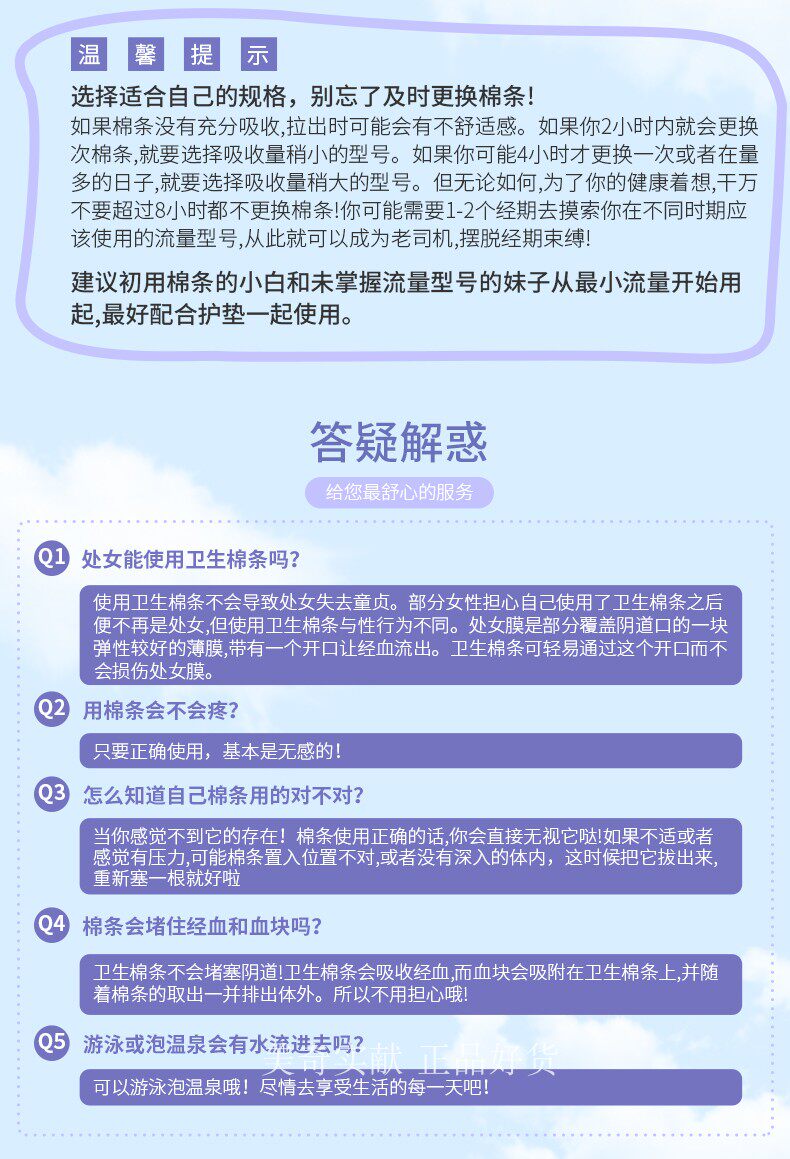 Время замены хлопковой полосы определяется в соответствии с менструальным объемом крови. Как правило, оно заменяется каждые 2-4 часа. Он должен быть вывезен в течение 8 часов, потому что хлопковая полоса слишком длинная на дороге Инь, которая может Легко вызвать тазовую инфекцию. Замените более 8 часов.