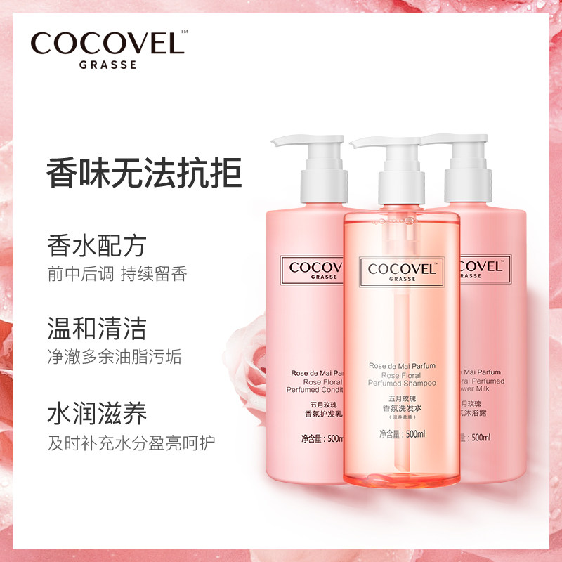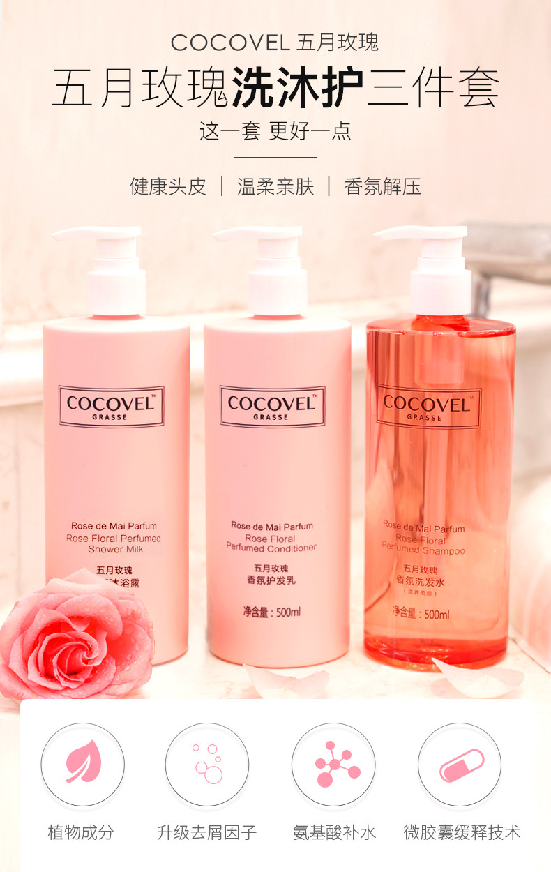 Парфюмированный шампунь с розой в составе без силикона, кондиционер, гель для душа, комплект, французский стиль
