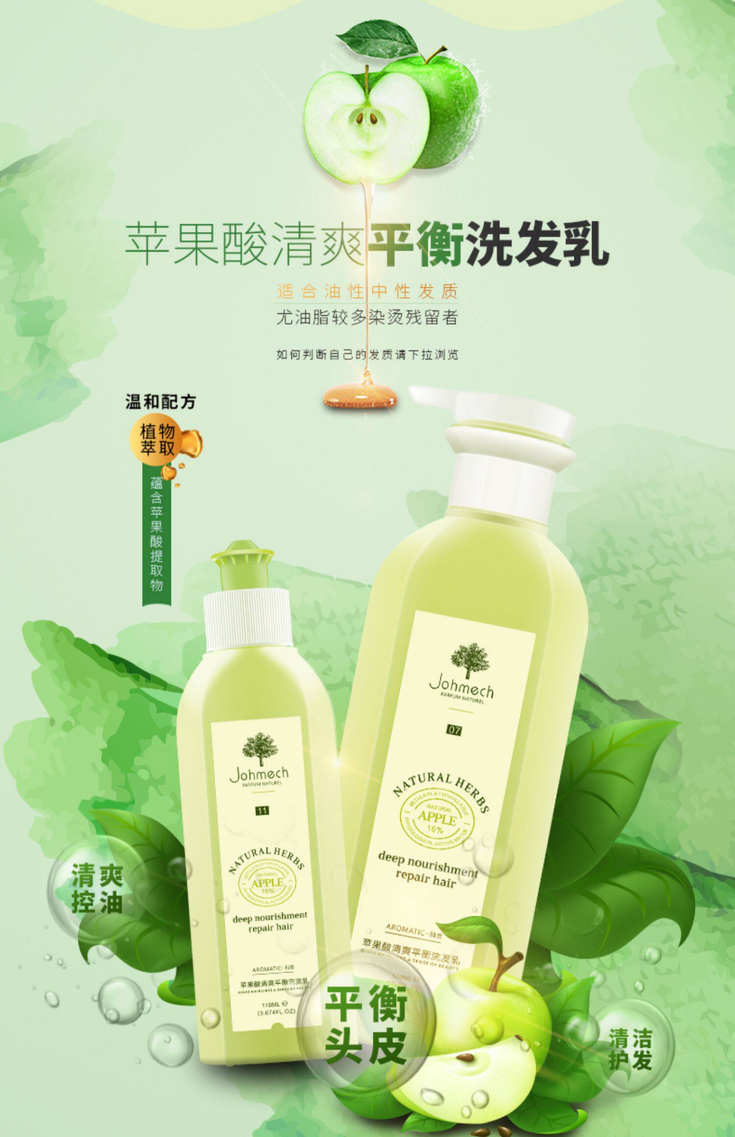 - Apple, освежающая фруктовая кислота, шампунь, кондиционер, 500 мл, 500 мл