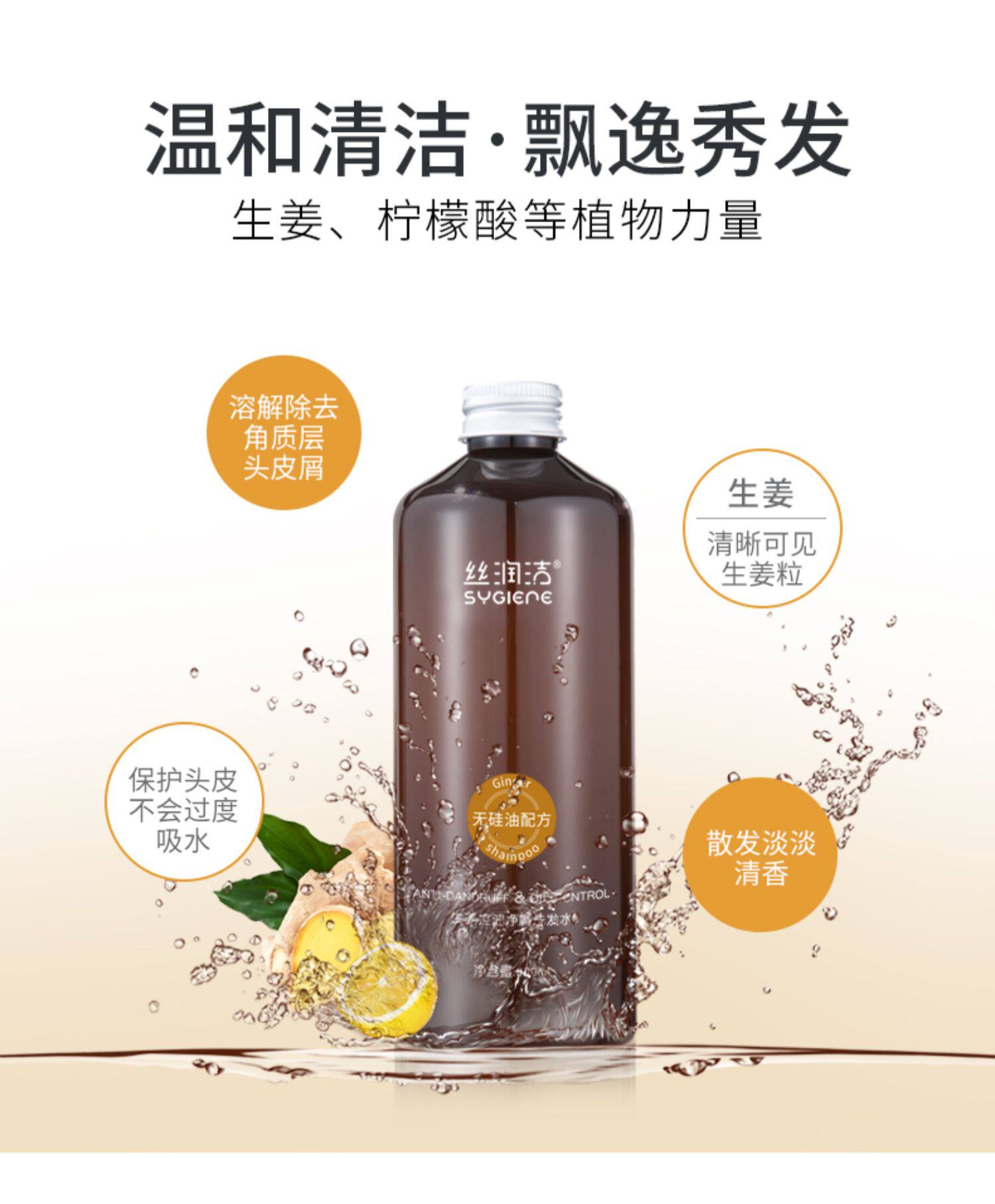 丝润洁 Питательный шампунь без силикона с имбирем подходит для вьющихся волос, кондиционер подходит для мужчин и женщин, удаление перхоти, контроль жирного блеска