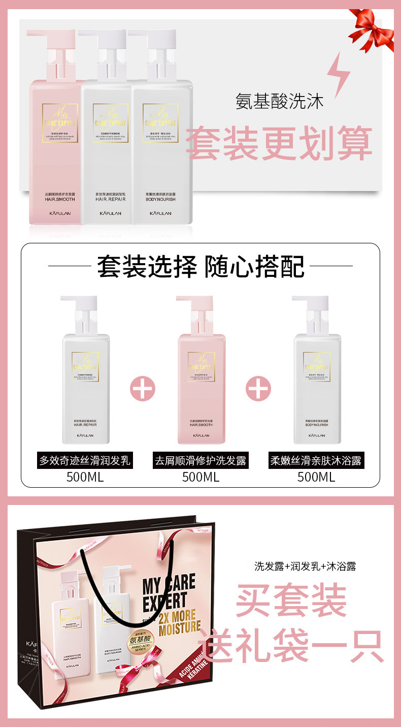 Шампунь на основе аминокислот, кондиционер, гель для душа, комплект со стойким ароматом, долговременный эффект, контроль жирного блеска, удаление перхоти