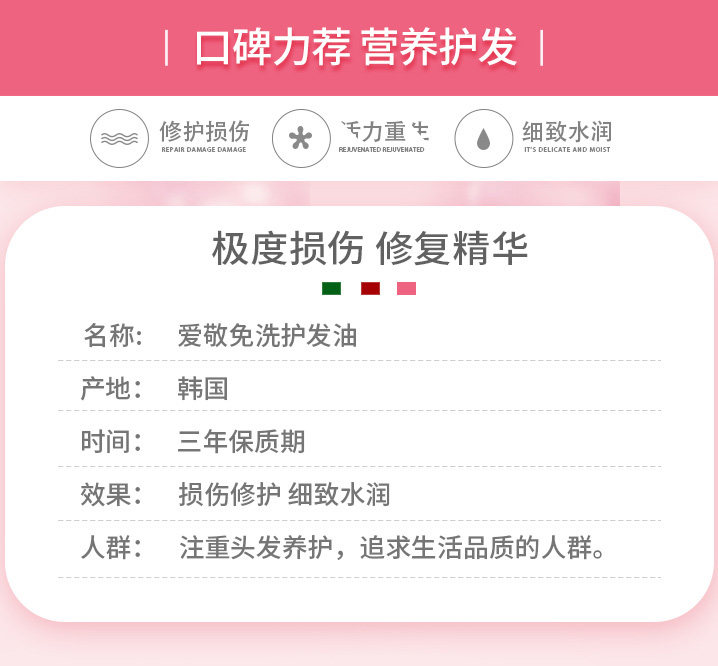 Импортное масло для волос, восстанавливающий кондиционер подходит для вьющихся волос, эффект гладких волос, в корейском стиле, предотвращение ломкости волос