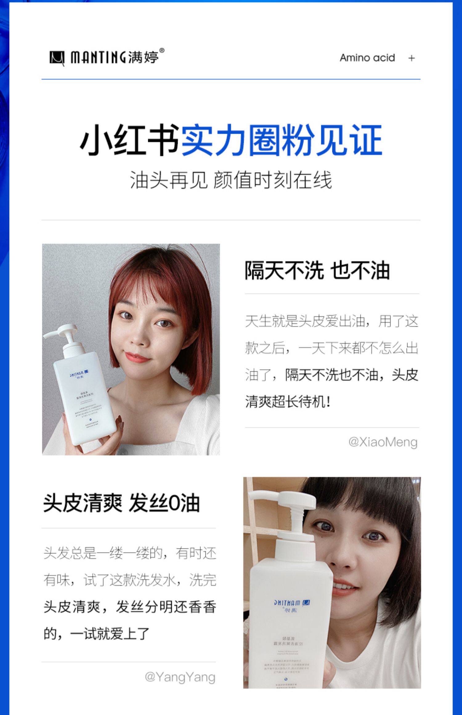 满婷 Парфюмированный шампунь со стойким ароматом на основе аминокислот, удаление перхоти, против зуда, контроль жирного блеска, придает объем, долговременный эффект